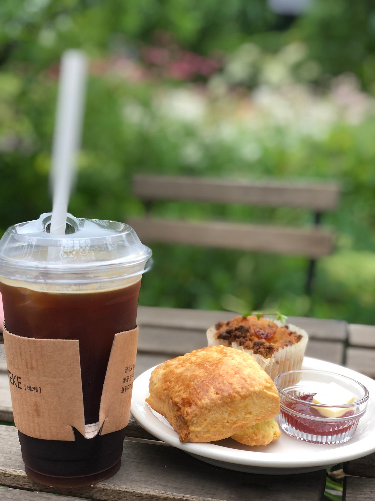 주문한 메뉴가 나오고 사람 적은 테라스 석으로 이동했다. 시선이 닿는 곳마다 포토존으로 손색없었다. 파스텔톤 꽃과 나무를 보며 카페의 사계절을 상상할 수 있었다.