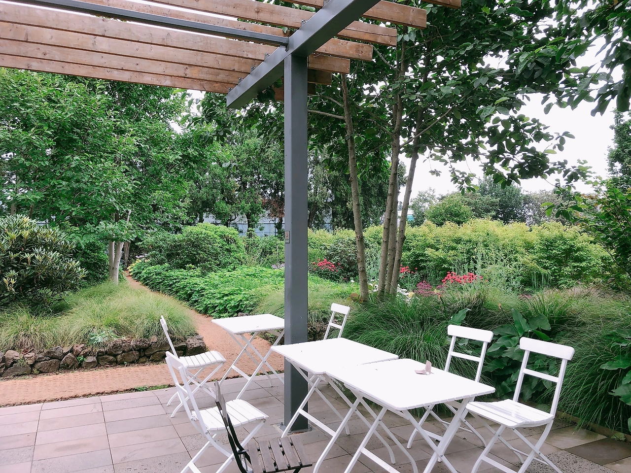 산책로 군데군데에는 작은 테이블들이 자리 잡고 있다. 테이블 간 거리도 널찍해서 한결 마음이 편했다.