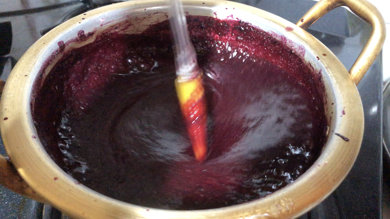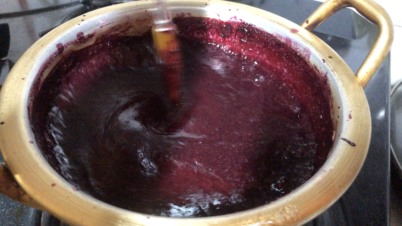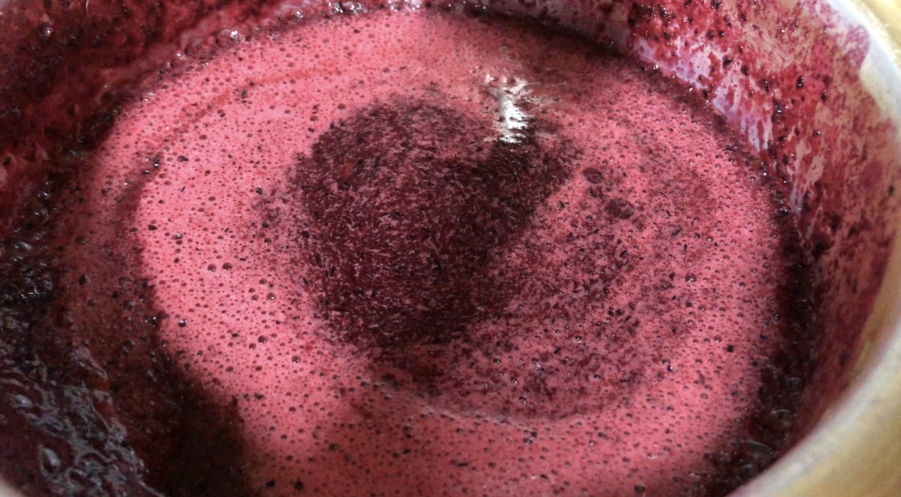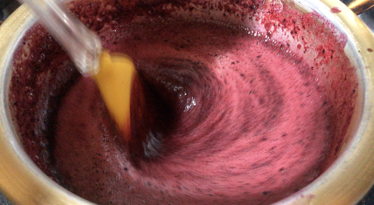 상상했던 불투명한 과즙이 아니다. 걸러지지 않은 껍질이 더해져 냄비를 물들이는 게 조금 무서웠다. 지옥 수프 느낌이 들었다. 멈출까도 싶었지만 이미 되돌리기엔 늦었다.
