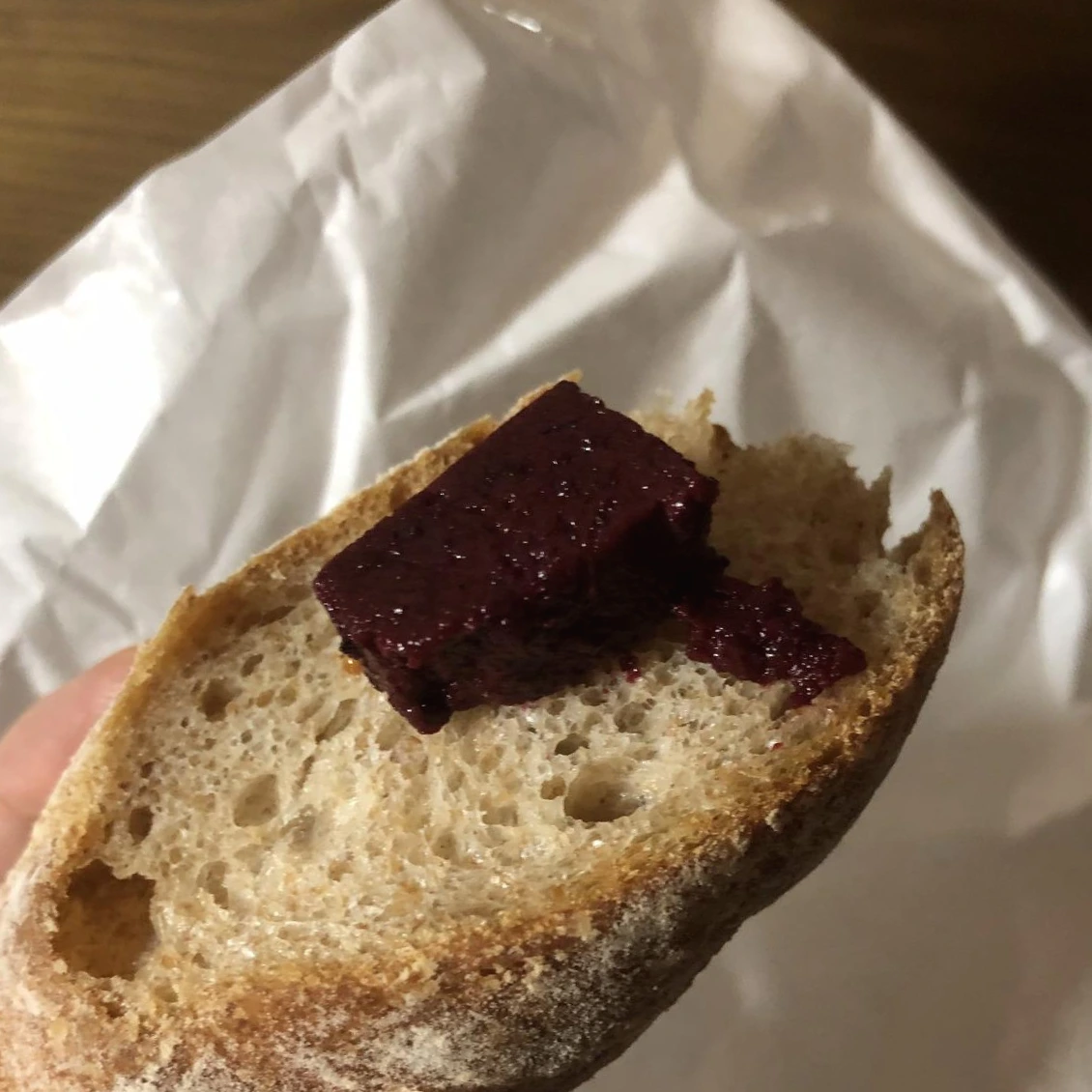 하나 집어 먹어보니 젤리와 쨈 그 중간쯤의 식감이다. 존재감은 어찌나 큰지, 젤리를 집을 때마다 손끝이 아로니아 색감으로 물들었다. 혹시 몰라 지인에게 사진을 보내며 권해보았지만 '설마 선지냐?'라는 물음 뿐, 선뜻 먹어보겠다는 사람조차 없더라. 결국 젤리는 냉장고 한편에 넣어두어야 했다.