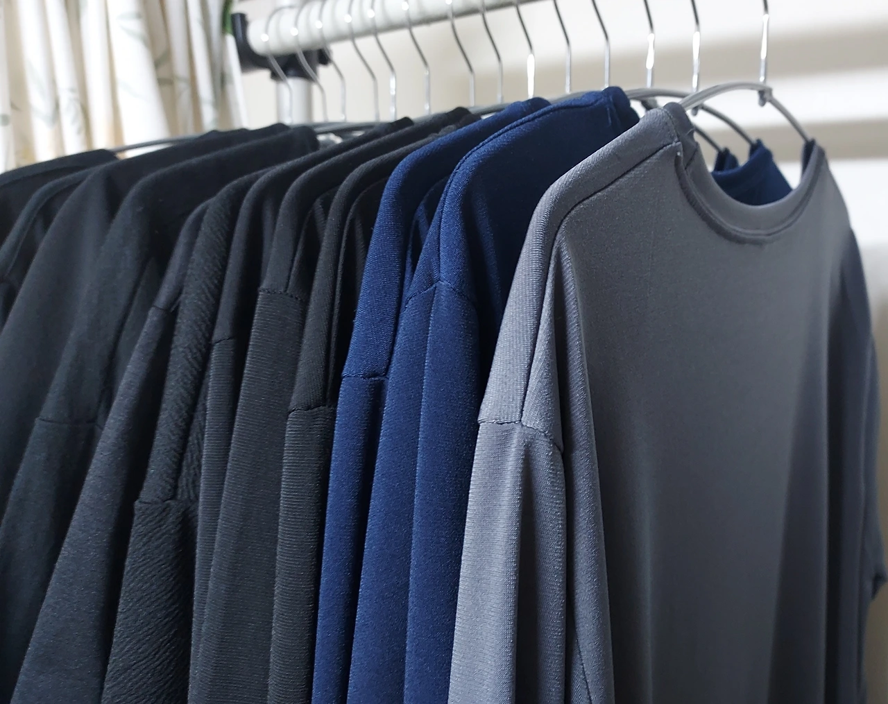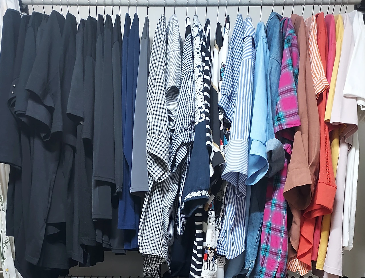 이렇게 대분류 한 옷들은 서로 섞이지 않은 범위 내에서 내가 입기 편한 방향으로 소분류한다. 컬러, 디자인, 소재, 착용 횟수 등 여러 가지 있을 것이다. 나는 비슷한 컬러, 디자인에 우선순위를 두는 게 보기도, 입기도 좋아서 그렇게 하고 있다.