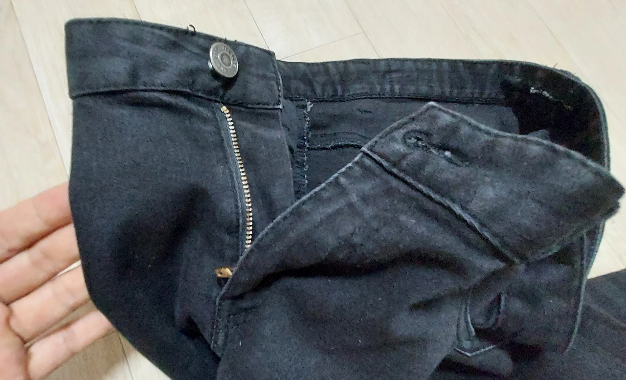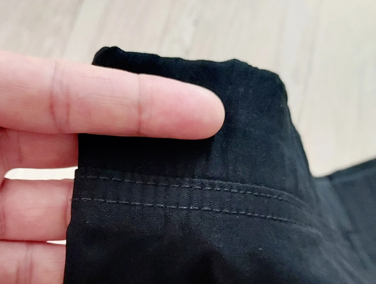 옷갈이 할 때 가장 어려웠던 점이 바지를 어떻게 거느냐였다. 나름 각을 재서 걸어보아도 들쑥날쑥. 어디에 기준을 맞춰야 하는지 감이 안 잡혔었다. 그래서 지금은 둘째 손가락을 자로 활용하고 있다는.