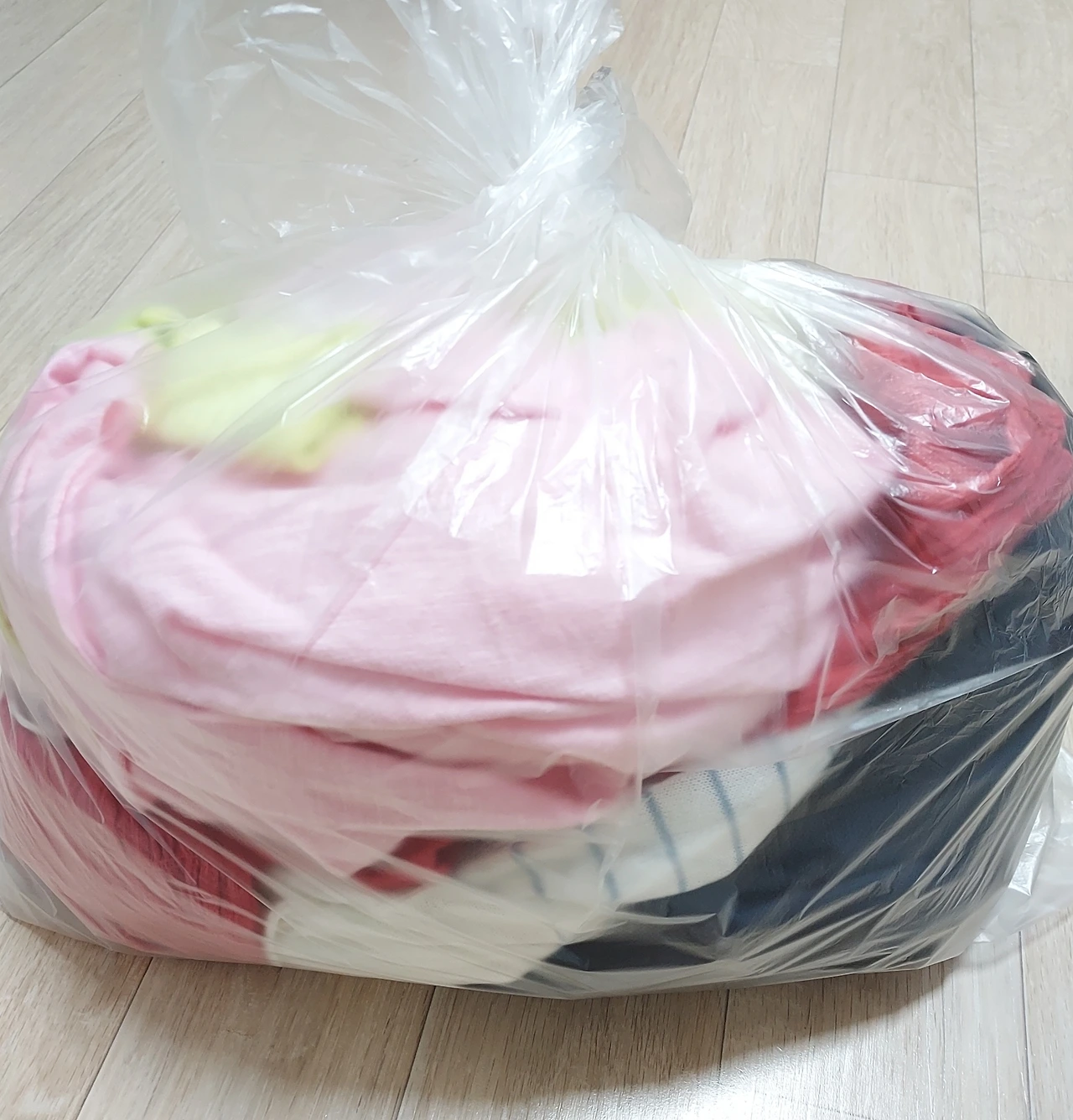 사실 벌거숭이로 살지 않는 이상 버릴 옷은 늘 생기기 마련이다. 작년에 10벌 버렸다면 올해는 7벌... 옷봉투 부피를 줄이는 수밖에.