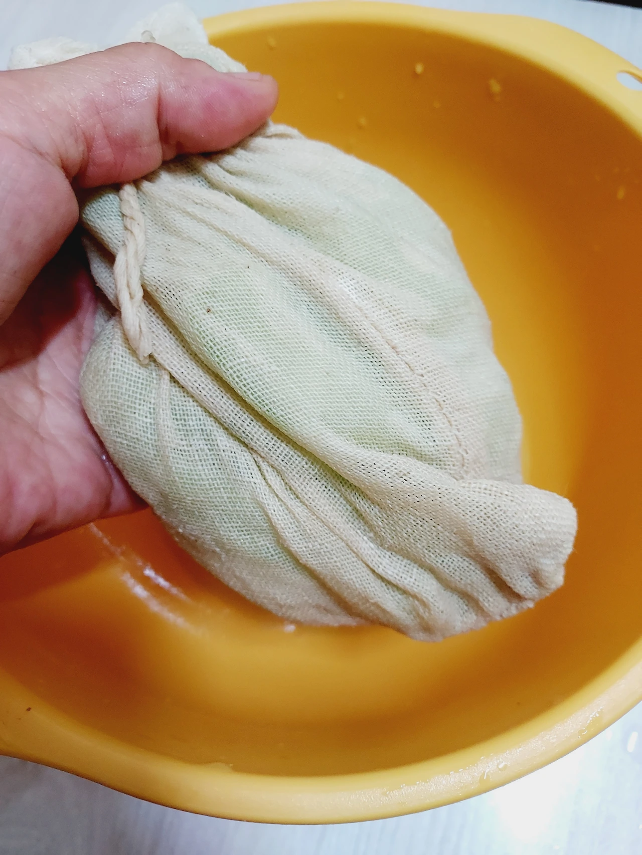 절이기가 끝난 노각은 물이 저렇게나 많이 나오지만 물 빼기는 지금부터 시작. 노각을 물에 헹구지 말고 면포에 넣고 눈앞이 노래지도록 꽈~~ 악 짠다.