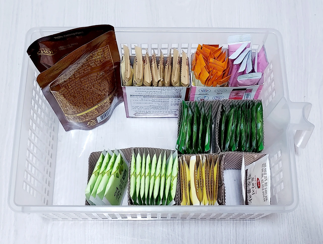 정리하기 귀찮았던 것 중 하나가 티백 또는 스틱형으로 된 차였다. 난 커피를 마시지 않아 빠졌지만, 스틱으로 된 커피도 있을 것이다.