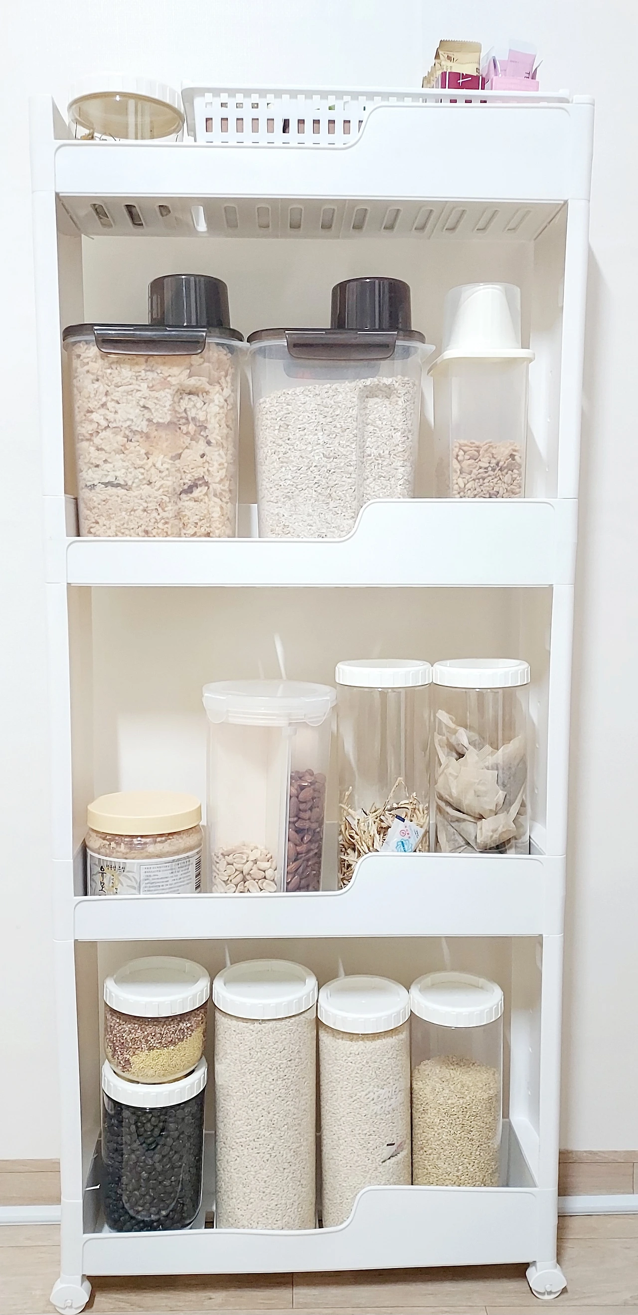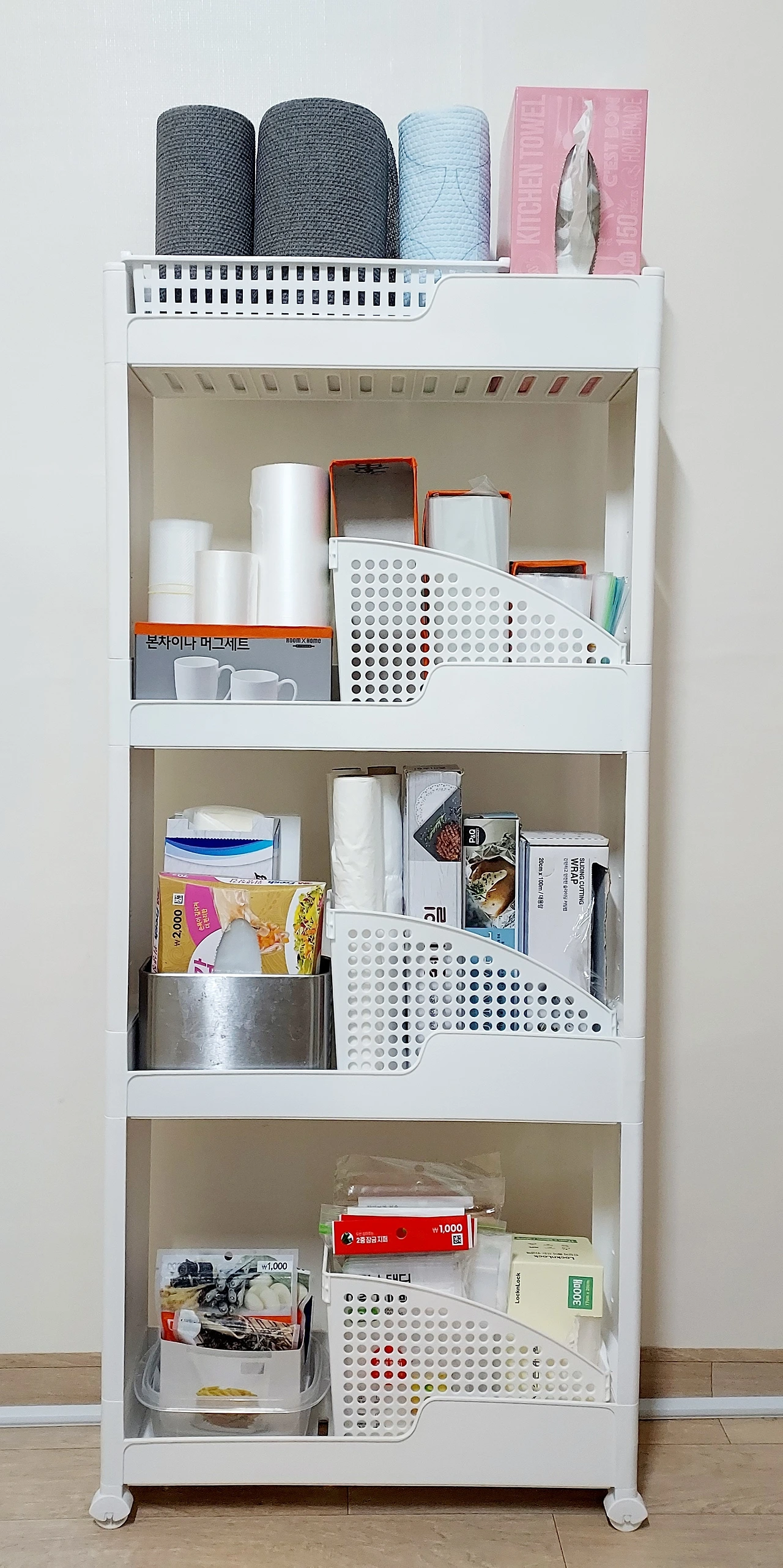 틈새수납장은 내게 주어진 60cm 공간에 들어갈 수 있는 아이템으로 손색없었다. 솔직히 한정된 공간, 적은 비용, 수납 능력을 두루 만족시켜 줄 걸 찾아보니 얘 말고는 눈에 들어오지 않았다.