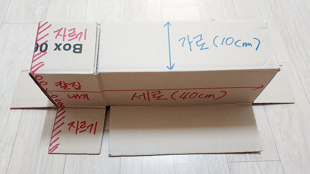 박스 반대쪽도 같은 방법으로 해준 다음, 칼집 낸 부분을 접으면