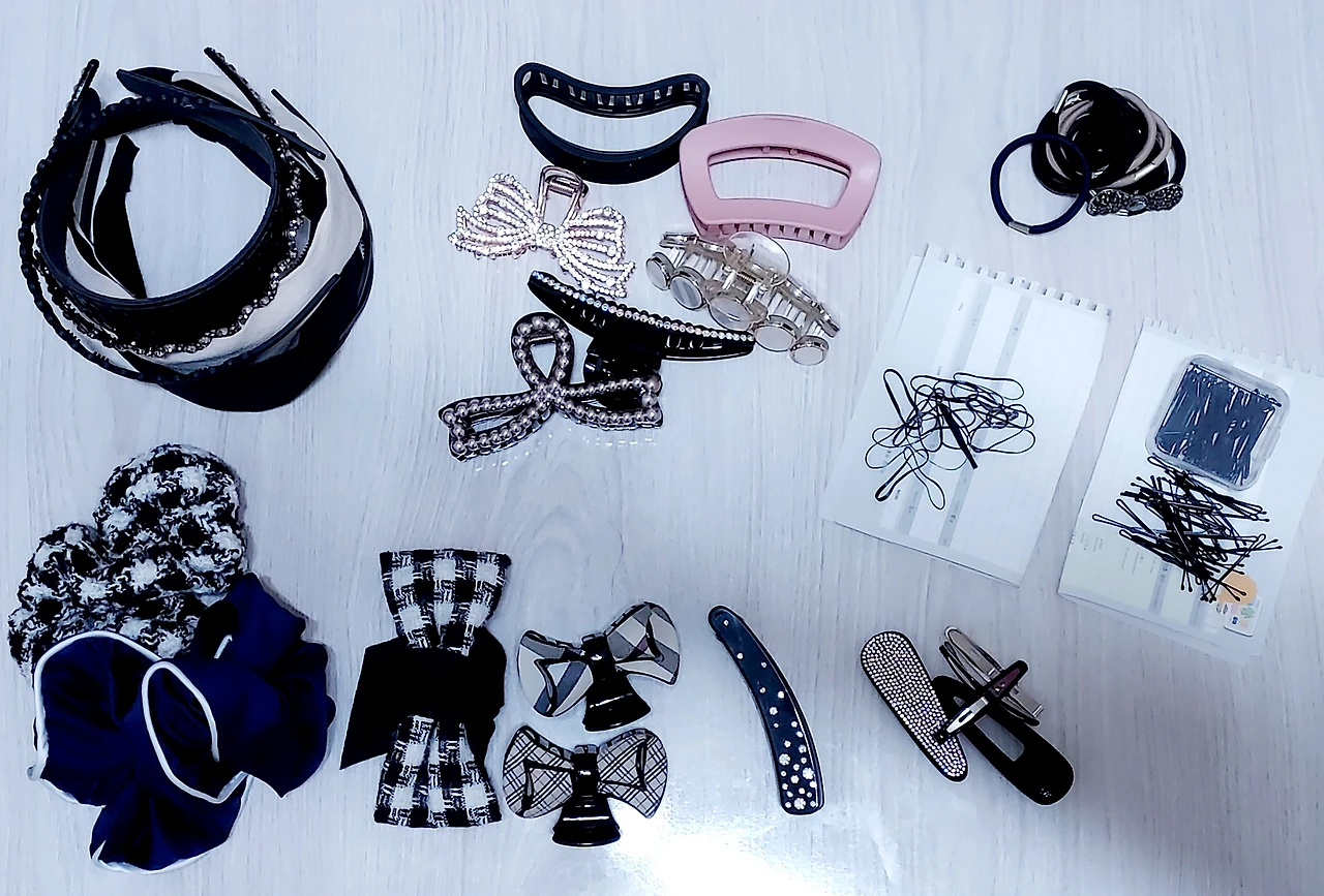 종류별로 분류하면 머리띠, 집게핀, 고무줄, 똑딱핀, 실핀으로 나눌 수 있다.