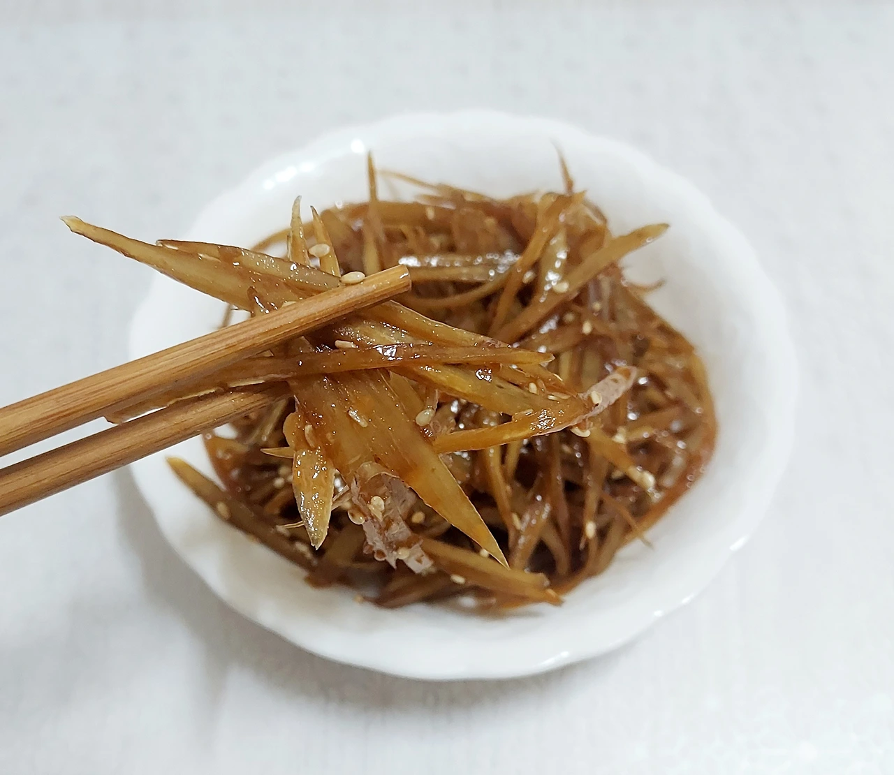 칼질 때문에 자주 못했던 반찬이 바로 우엉볶음이었다. 솔직히 단단하고 길쭉한 거 잘못 썰었다가 큰일 날 것 같아 무서웠다.