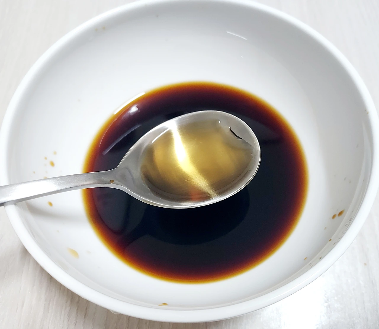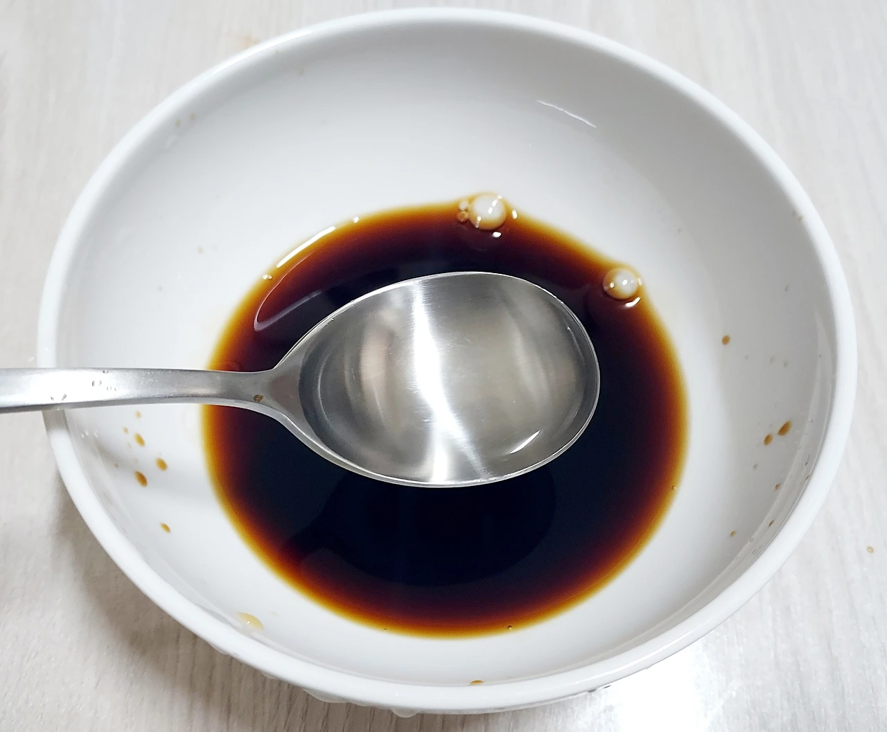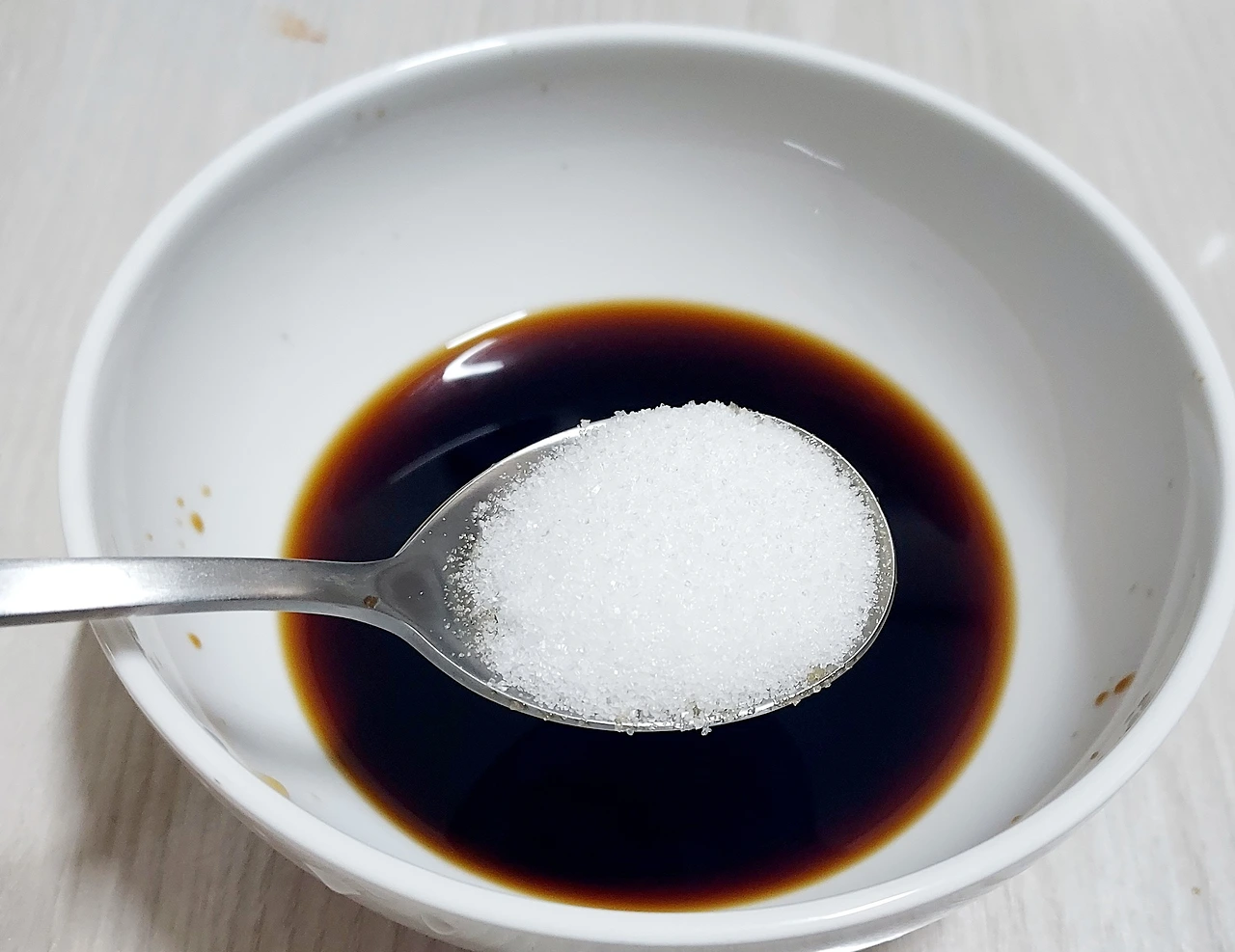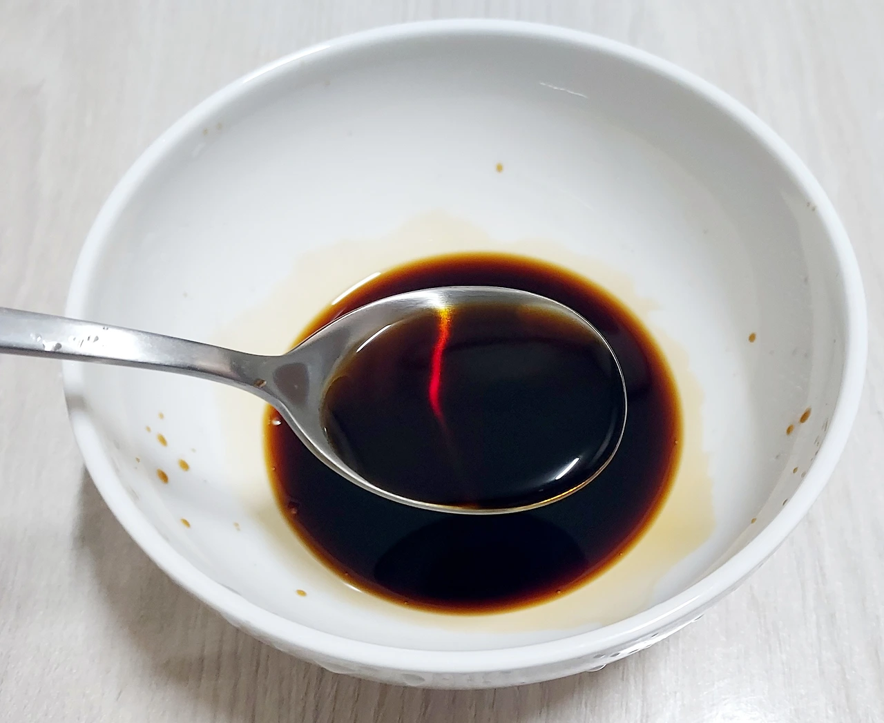 여기에 참치액 또는 멸치액젓 1수저. 깻잎찜 양념장에는 참치액 또는 멸치액젓이 들어가야 깊은 맛을 낸다. 마지막으로 설탕 평평하게 1수저.