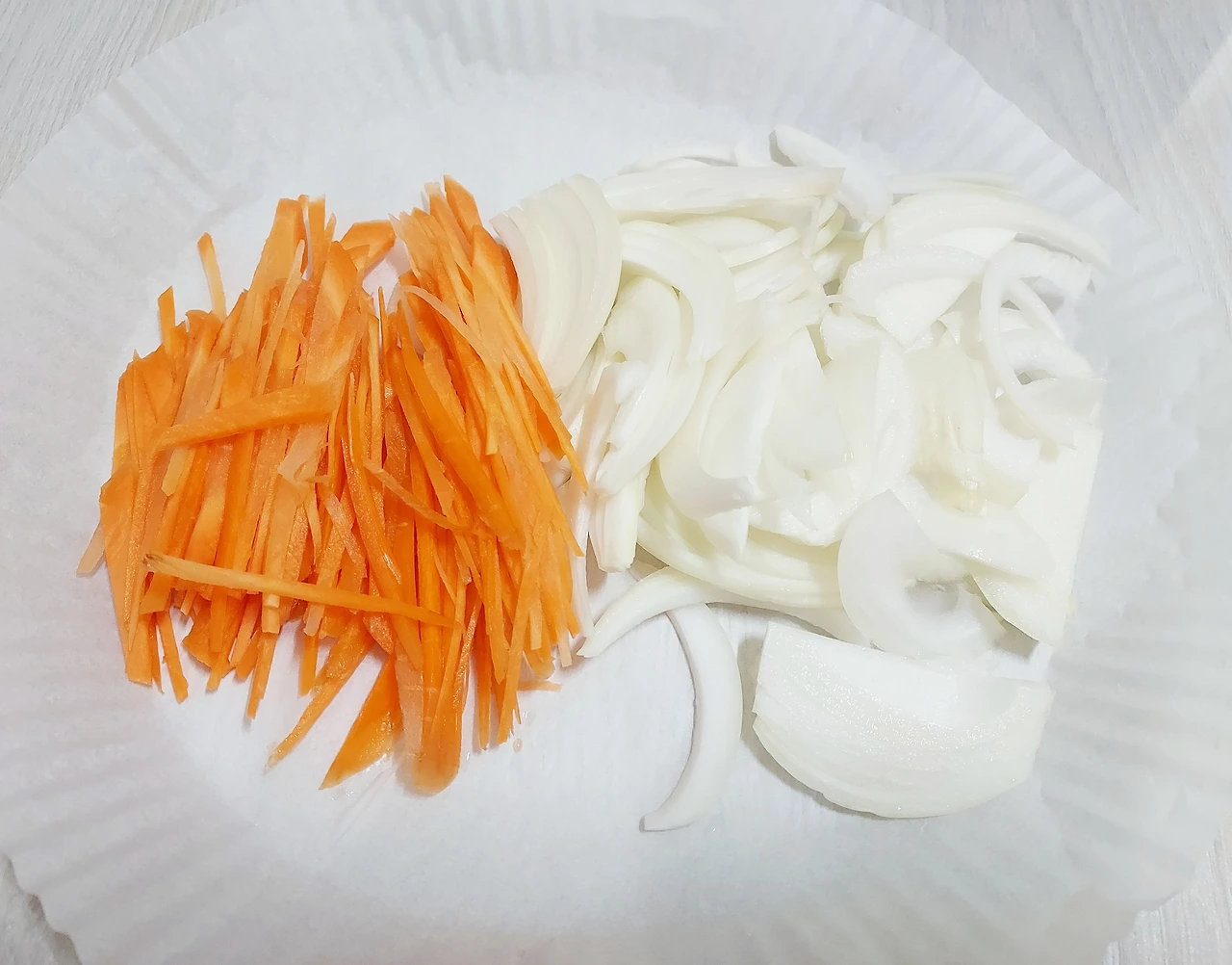 같이 무칠 당근과 양파를 썰어 한 줌씩 준비하기