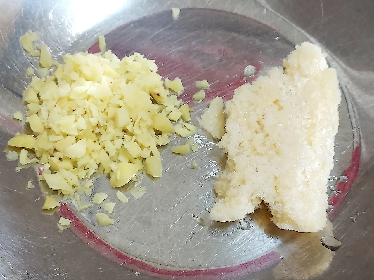 난 생강 씹는 맛과 향을 좋아해서 성글게 다져서 김치나 겉절이 양념으로 쓴다. 다진 생강과 마늘을 1수저 반 넣기