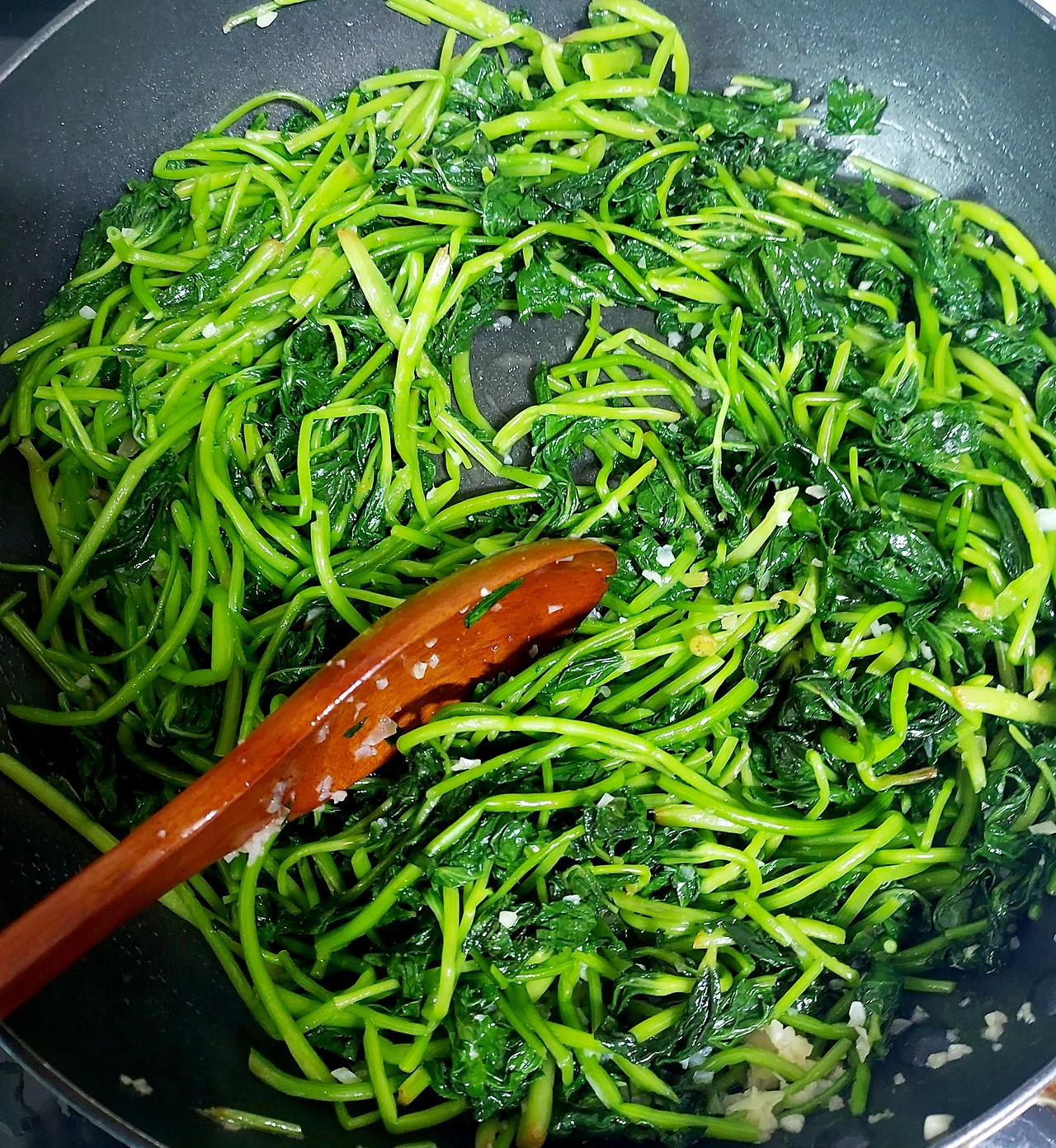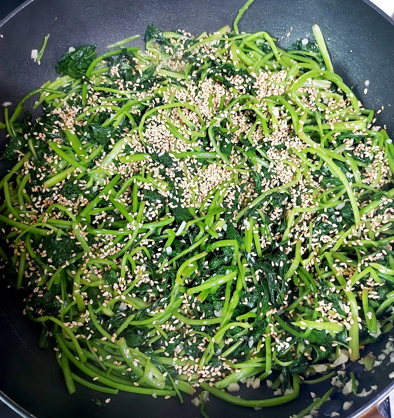 3분 정도 볶는다. 나물에 열기가 골고루 가도록