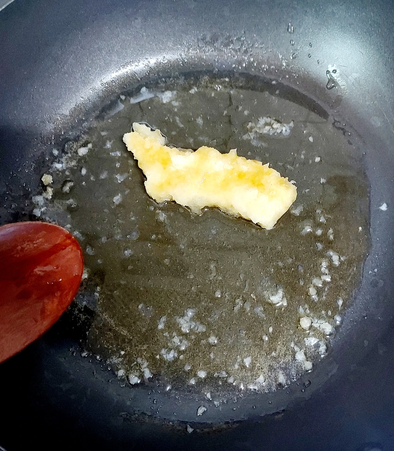 다진 마늘 한수저 넣고 볶다가
