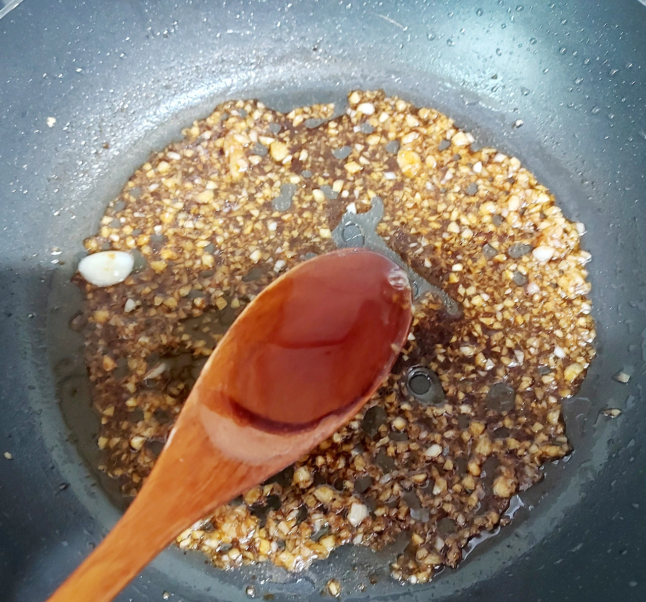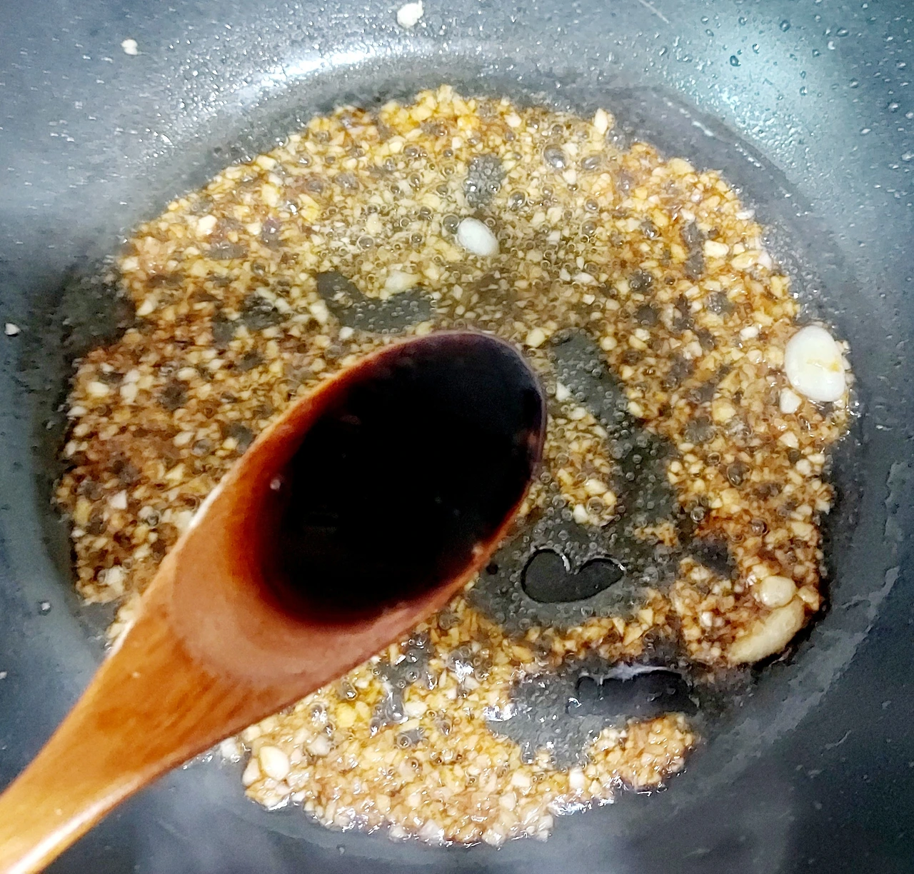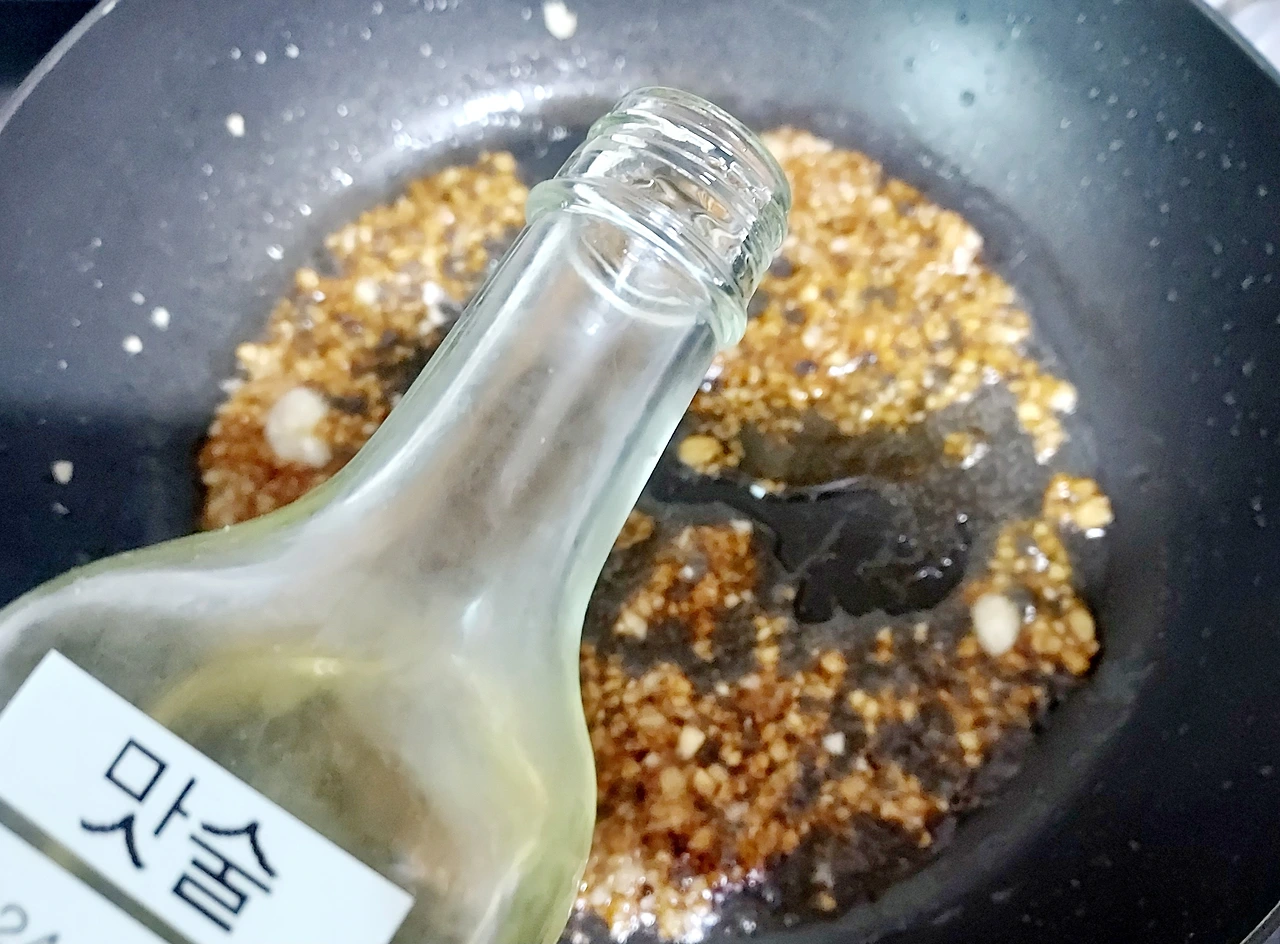 기름 두른 팬에 다진 마늘 한수저 넣고 달달달