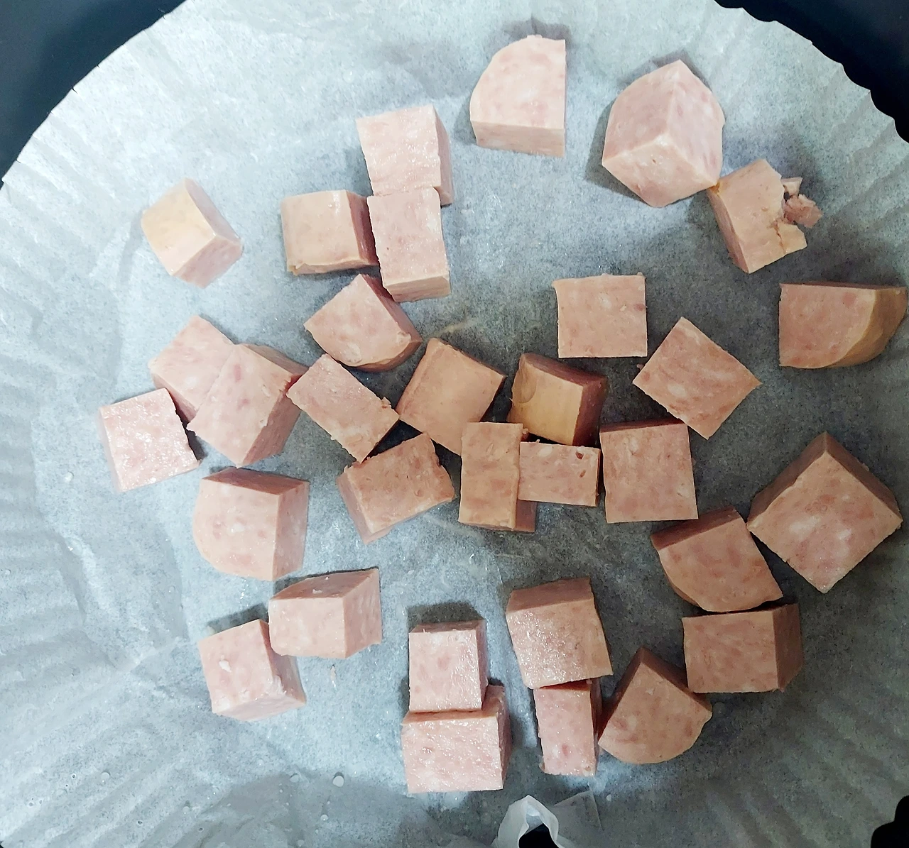 에어프라이어는 햄과 두부 모두 180도, 20분으로 설정했다. 에어프라이어를 이용할 때는 중간에 재료들을 뒤집어가면서 굽는 것이 좋다.