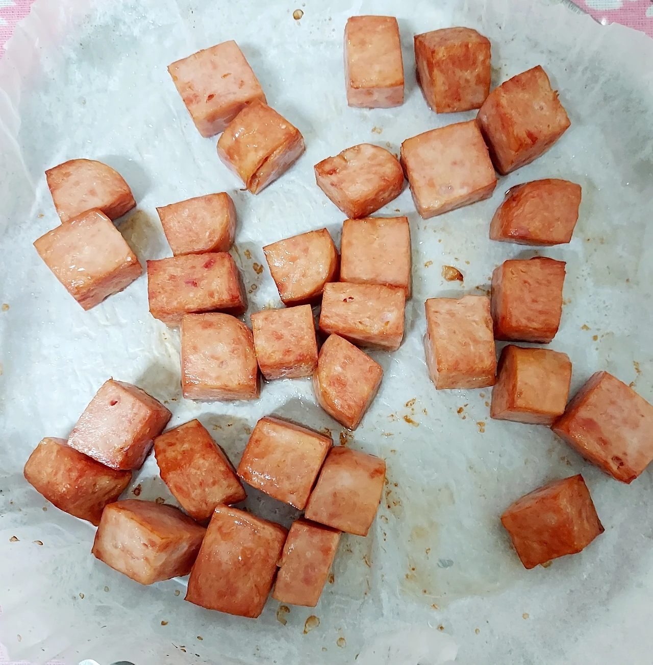 기름 많은 햄은 그냥 돌리고,