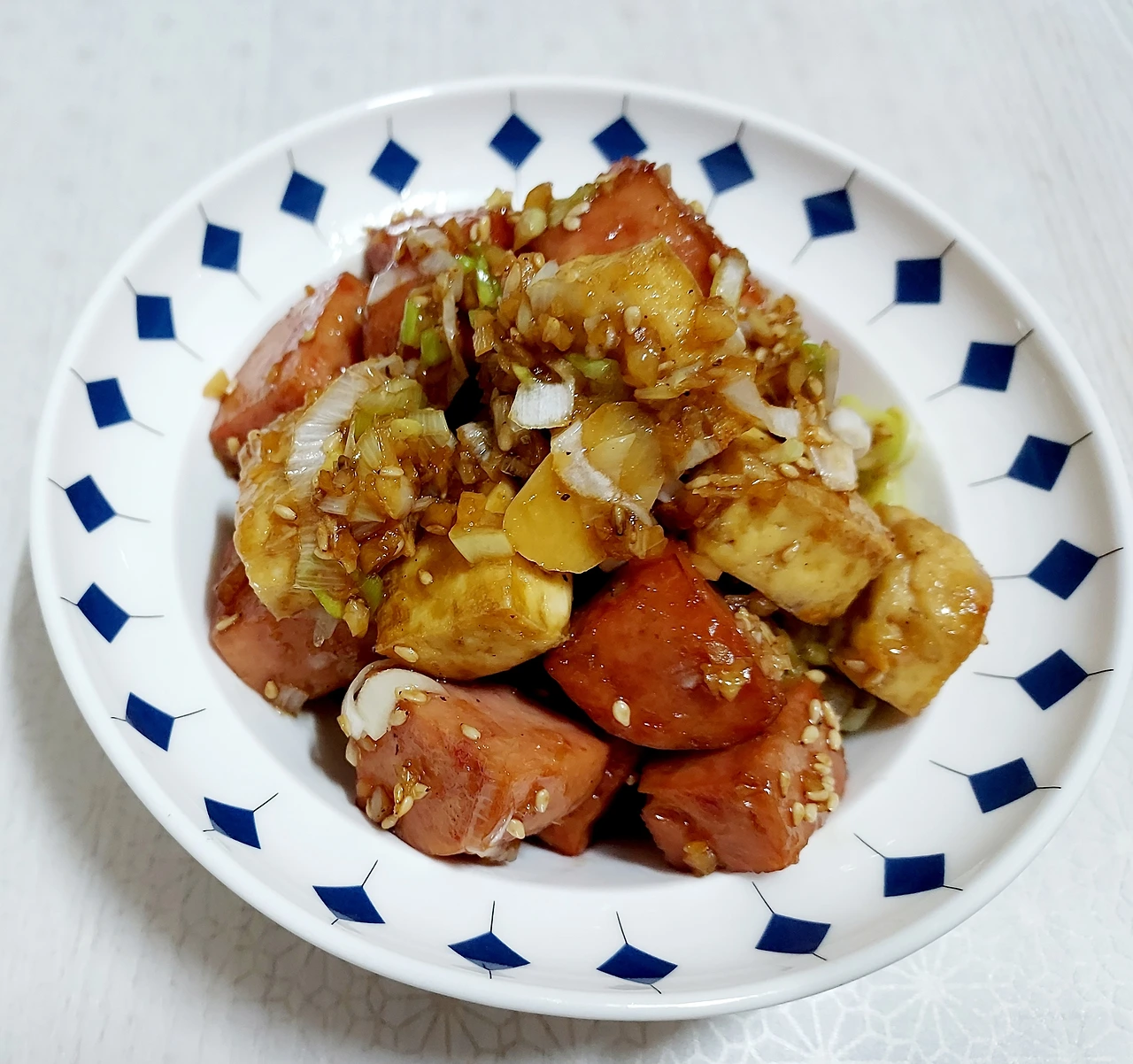사각햄 한 개와 두부 한모를
