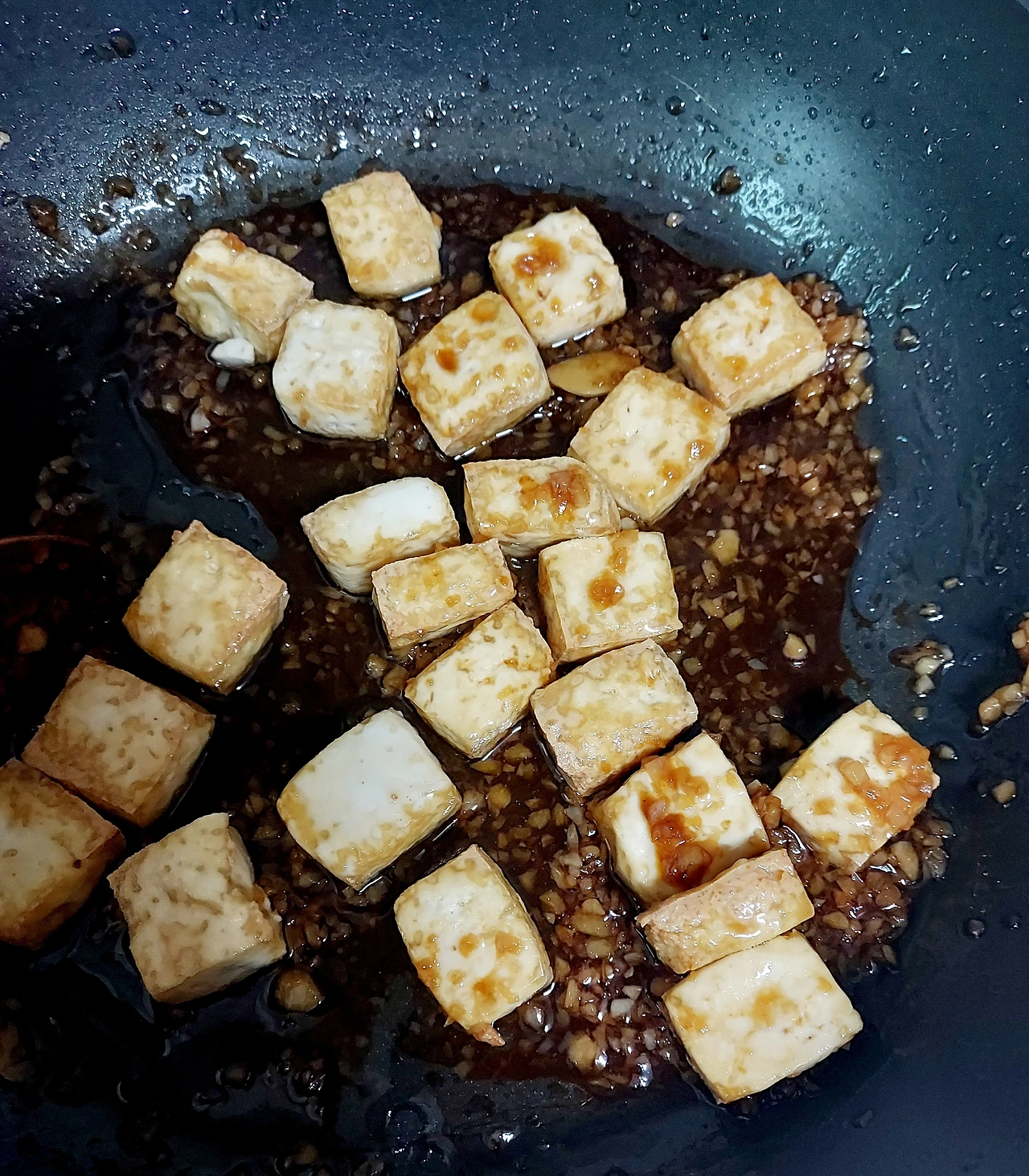 두부를 넣고 볶는 단계에서 맛보기하고