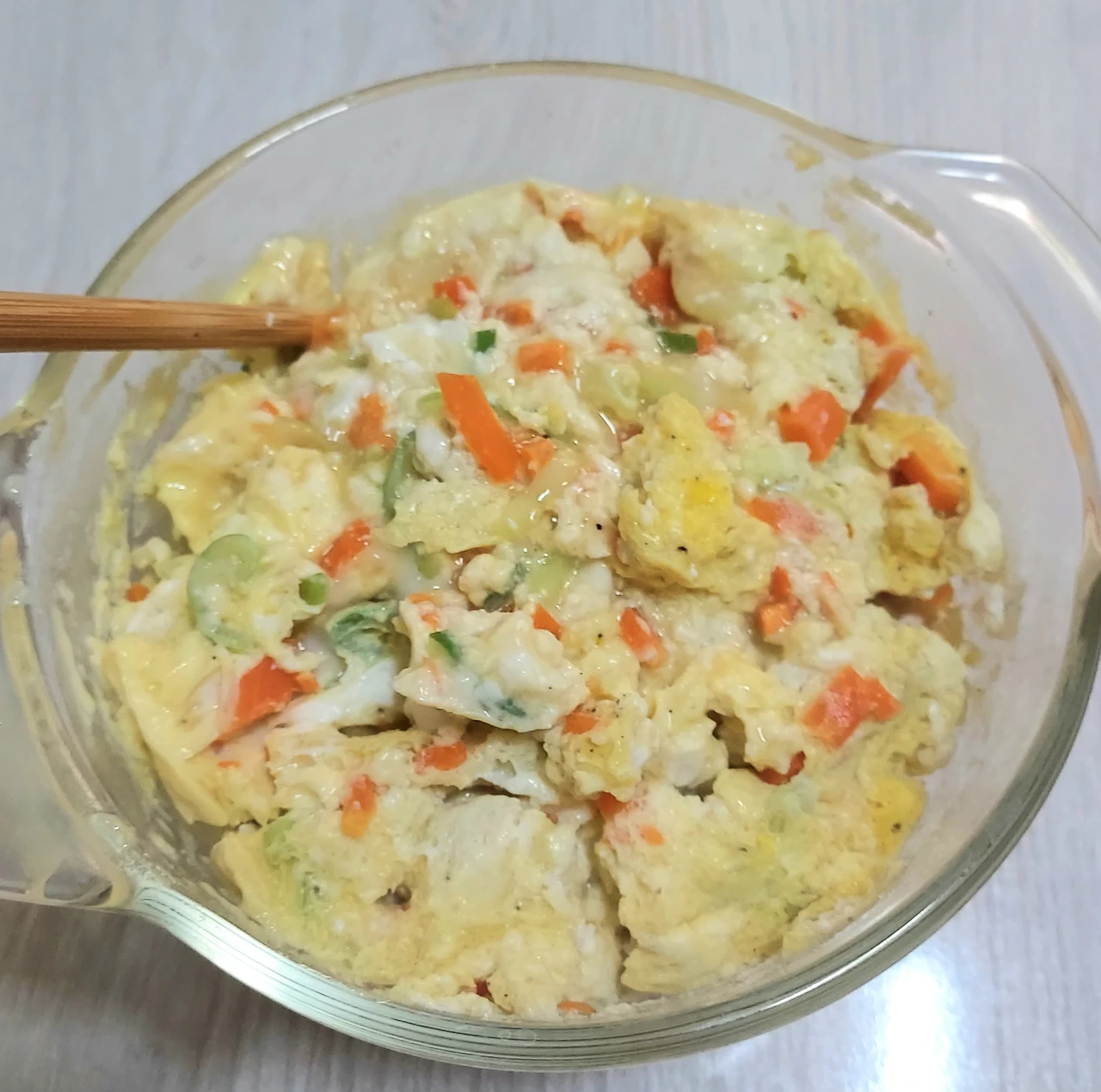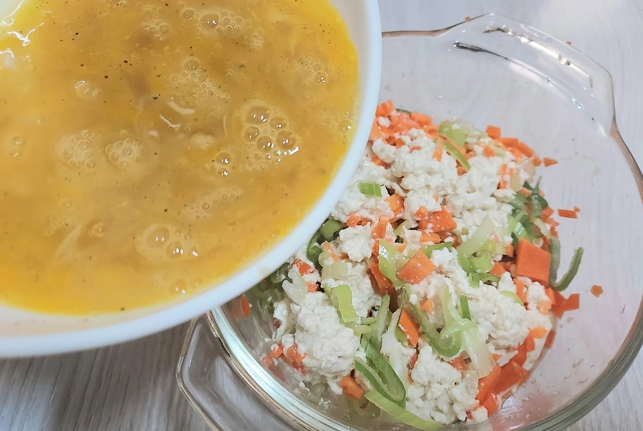 두부달걀찜은 자투리채소를 해결하기 아주 좋다. 당근, 대파, 양파 등 요리하기 애매하게 남은 채소가 있다면 다져서 넣어보시길. 맛살을 잘게 찢어 넣어도 좋다.