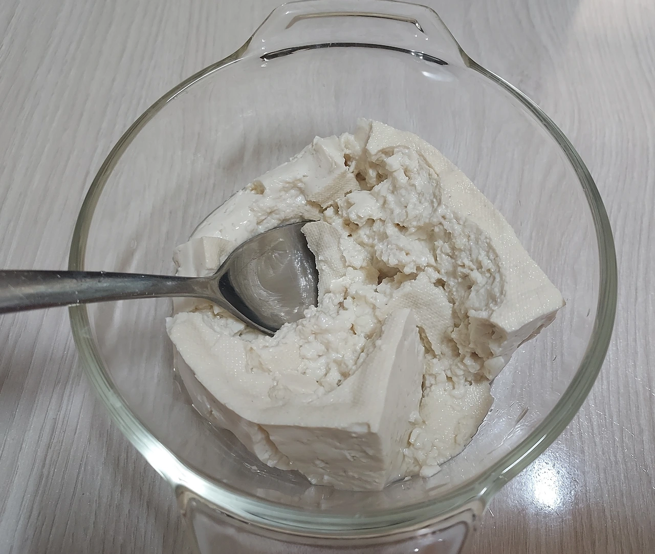 난 아침에 누룽지를 끓여 먹는다. 아침이라 자극적인 반찬을 먹는 대신 두부로 달걀찜을 해서 곁들인다. 두부 반모를 전자레인지 용기에 담아 으깨기.