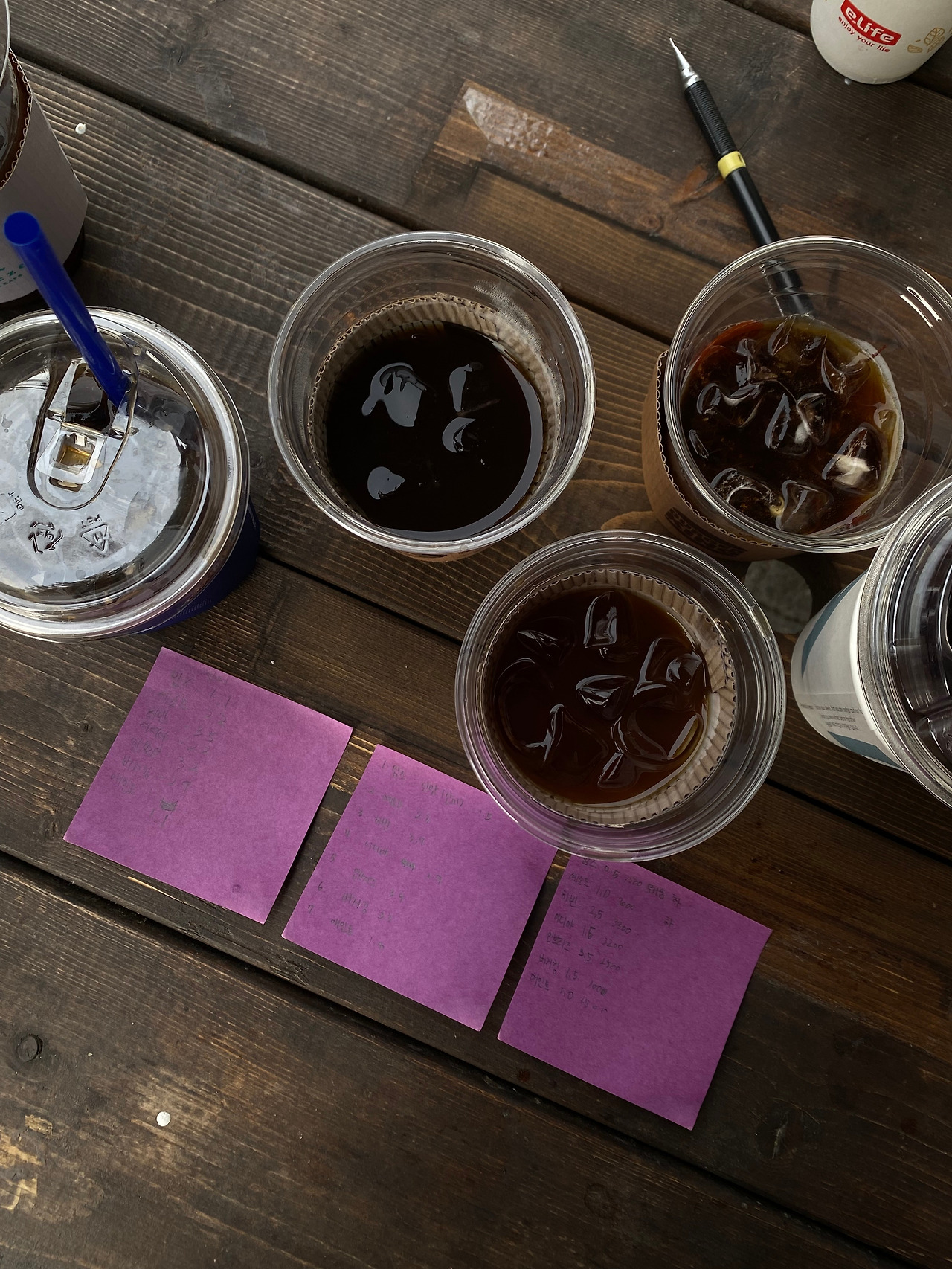 친구 A: “교내에 커피 파는 곳 몇 군데야?” “몇 개 없는데 전부 사와서 비교해보자.”
