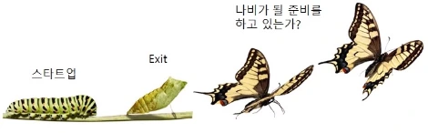 앞서 회사는 인간과 같이 성장하고 죽어간다고 말했다. 그런데 한가지 다른 부분이 있다. 곤충처럼 변태를 한다는거다. 그것도 우리 같은 스타트업은 나비처럼 완전변태를 한다. 초기 세팅된 멤버는 나름대로의 능력과 한계를 가지고 있다. 회사가 성장하여 어느 수준 이상이 될 경우 팀원과 임원들, 때로는 대표까지도 초과되는 회사의 규모를 감당하지 못하게 될 수도 있다. 많은 성공한 스타트업의 사례에서 보듯이 그 과정에서 외부 인력이 관리자로 들어와 배신감을 느낀 초기 멤버가 나가거나 창립자끼리 분열되어 분사하고 경영권 다툼으로 한동안 몸살을 앓기도 한다. 나는 이것이 상당히 자연스러운 현상이라고 생각한다. 스타트업은 최고의 멤버로 구성될 수도 없고 그 정도의 비싼 인력이 여러명 필요하지도 않지만 그 회사가 성공하면 상황이 달라지기 때문이다. 그땐 나비와 같이 허물을 벗고 새롭게 태어나야 한다. 조직의 성격과 체질과 형태가 모두 변화되는 것이다. 나이가 들어 변태한 것일 뿐 변절이라고 봐도 안되고 퇴화는 더욱 아니다.