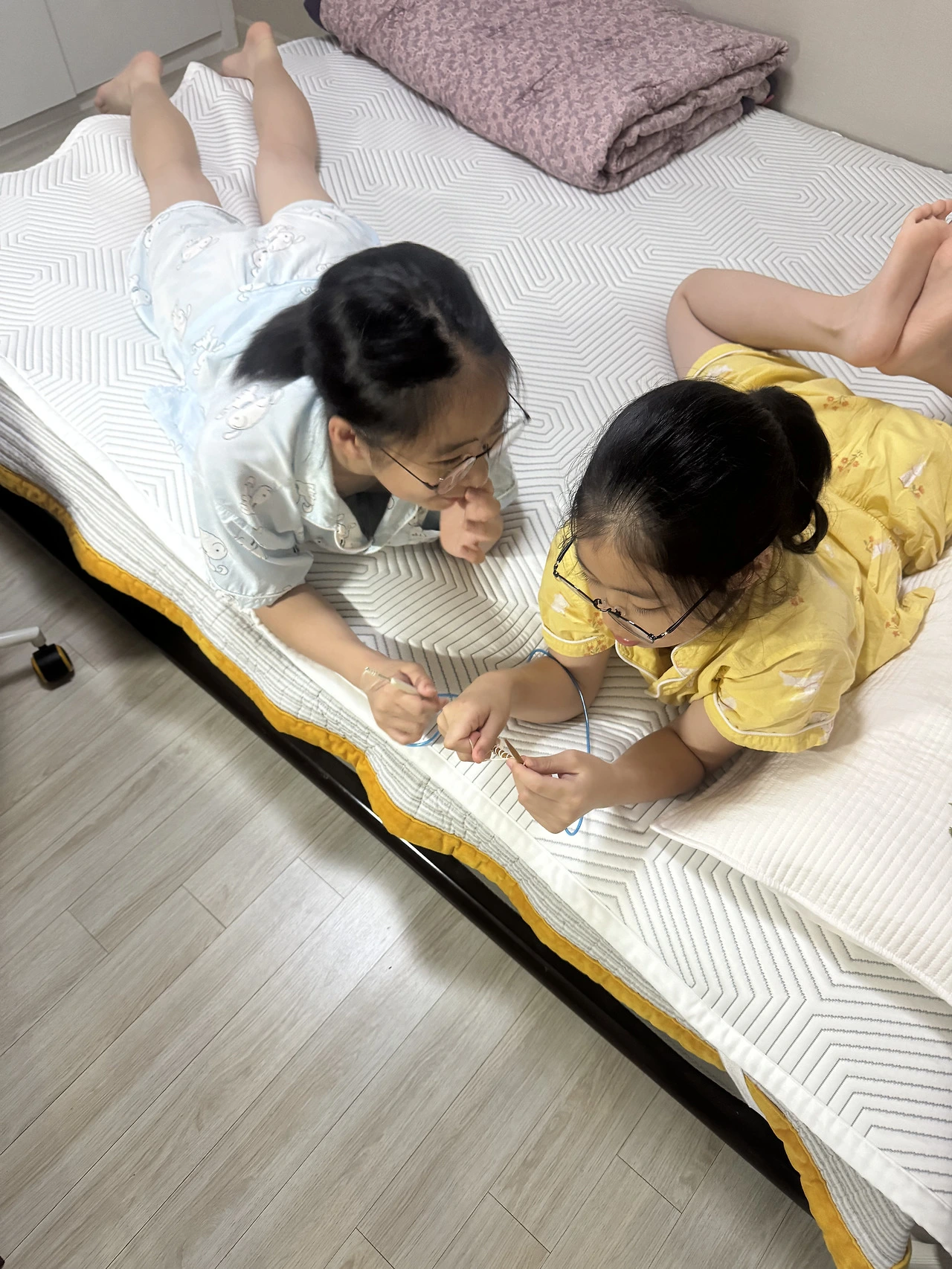 그런데 요즘 두 아이를 보면 밥을 안 먹어도 행복할 정도로 서로를 향한 마음이 따뜻하다. 작년 한 해 사춘기를 보내는 언니의 눈치를 보며 둘째는 심기를 건들지 않으며 조심조심 지내고, 잘 웃지 않는 언니를 위해 개그맨처럼 웃겨주더니, 학원에서 언니가 보고 미소를 지을만한 그림을 문제집에 몰래 그려놓기도 했다. 그런 마음이 잘 전달되었는지 첫째는 둘째에게 마음을 활짝 열었고, 둘도 없는 친구가 되어 서로 깔깔대며 잘 지냈다. 방학을 보내며 언니가 학원에 가고 집을 비우면 언니를 위한 무언가를 준비하고, 동생이 학교에 가면서 자리를 비우면 첫째 아이는 예쁜 그림을 그려 선물해 줬다. 둘이 함께 화음을 넣어 노래도 하고, 피아노도 치고, 춤도 추고, 그야말로 잘 들 논다.