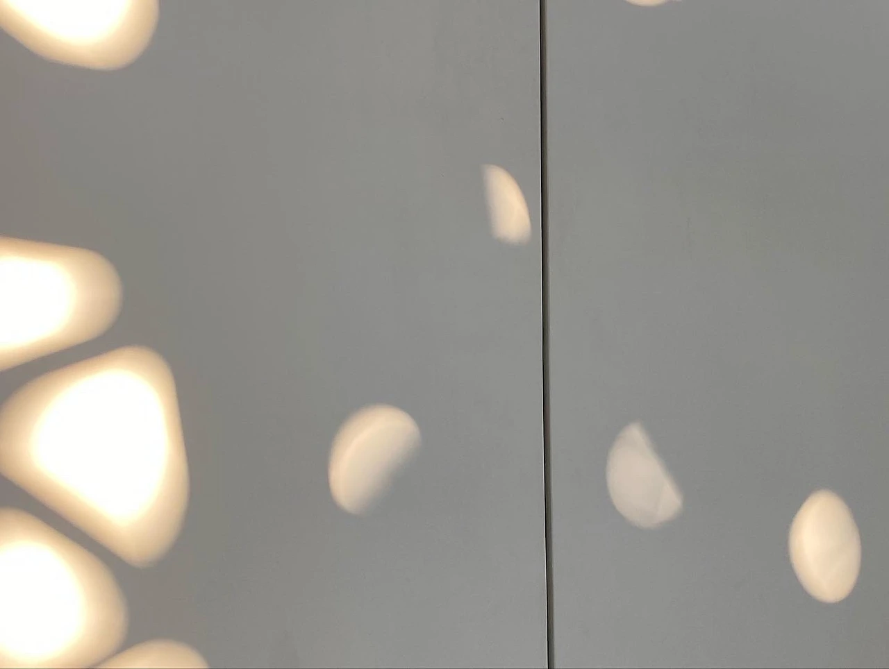 도슨트의 설명에 따르면 지붕은 8개의 막이 겹쳐져 각기 다른 크기의 모형 사이사이로 빛이 내려오는 것이고, 각기 다른 모형은 세상에 단 하나 같은 모양이 없는 밤 하늘의 별을 상징 하기도 한다고 했다. (오래 되어서 기억이 가물가물하다. 당시 엄청 멋있는 설명이었는데.... )