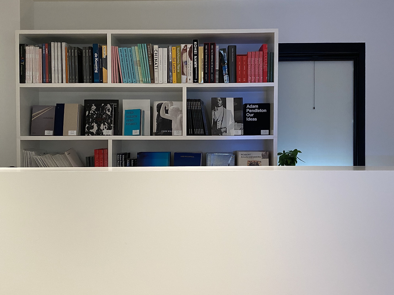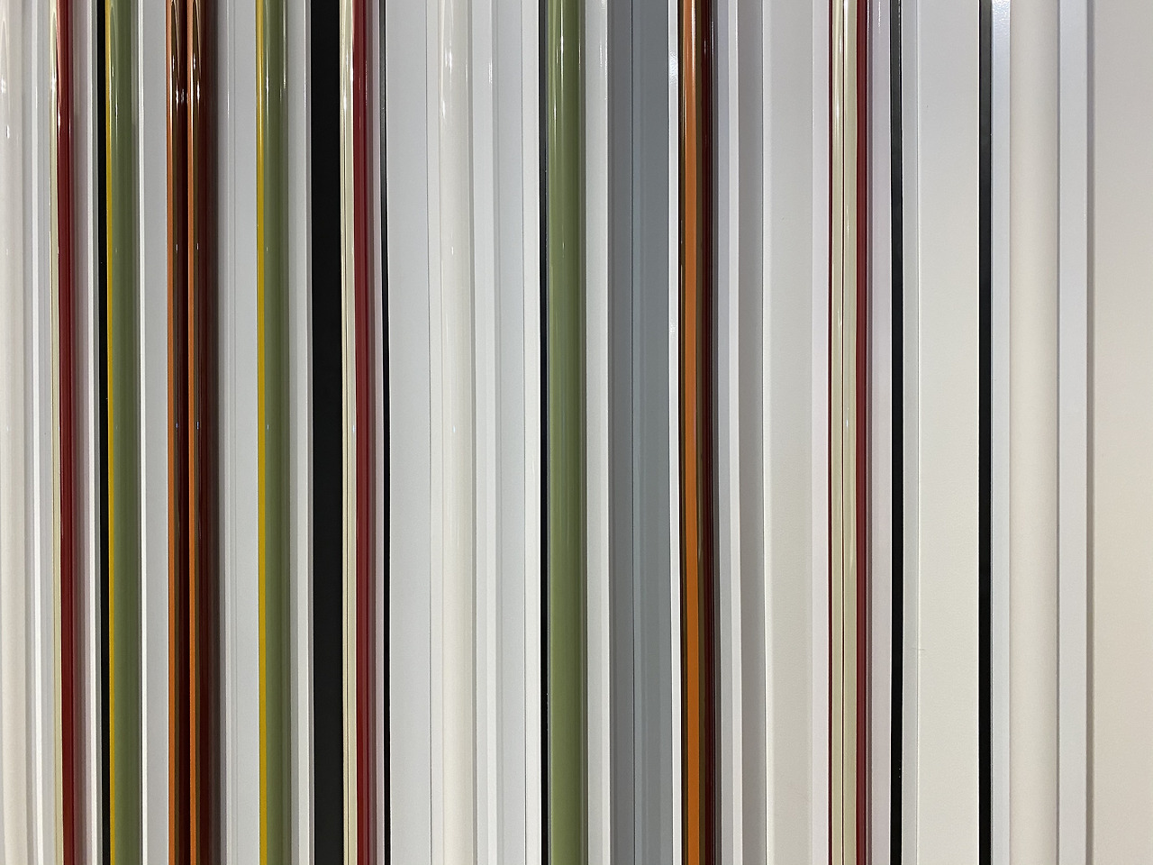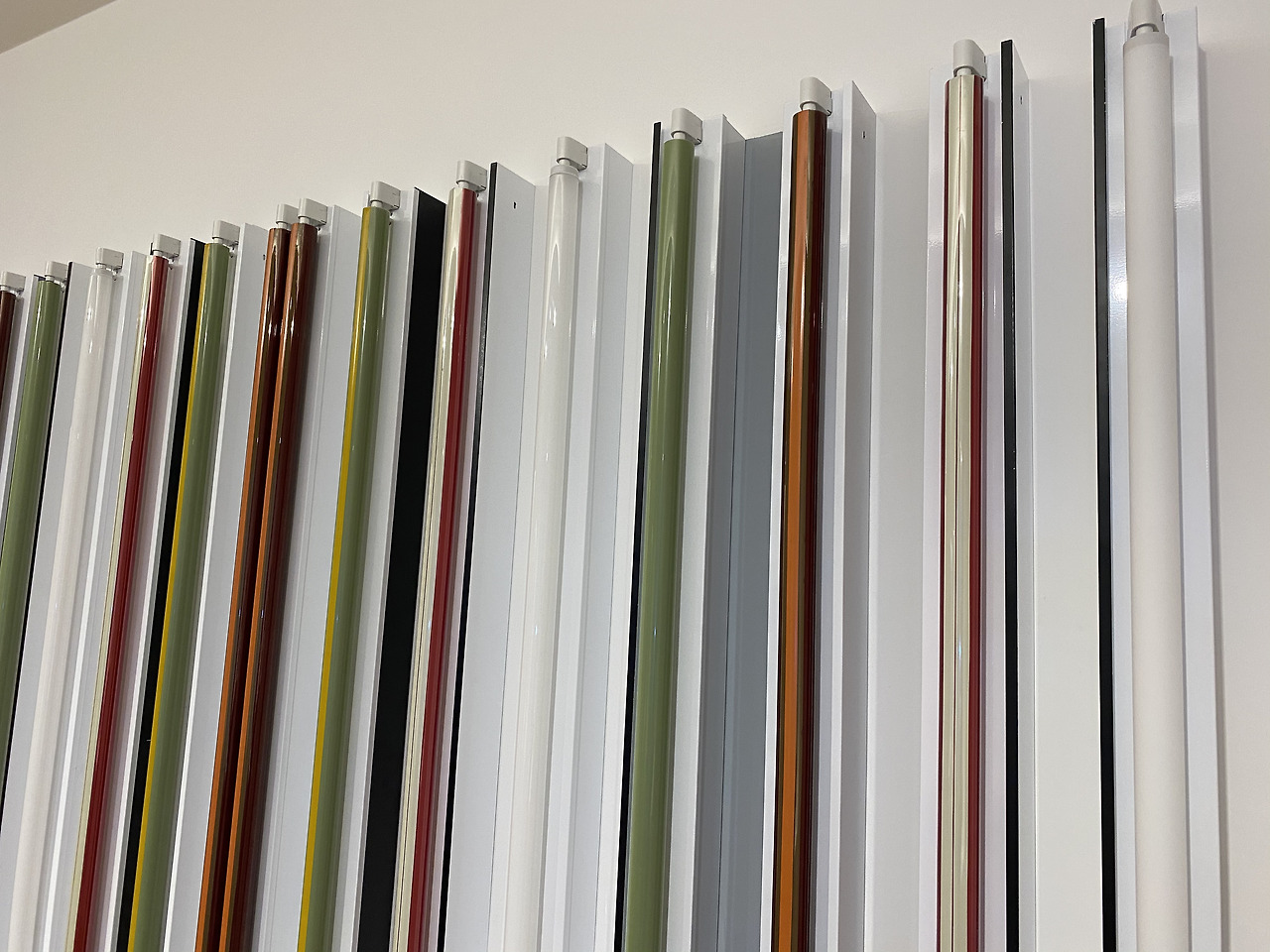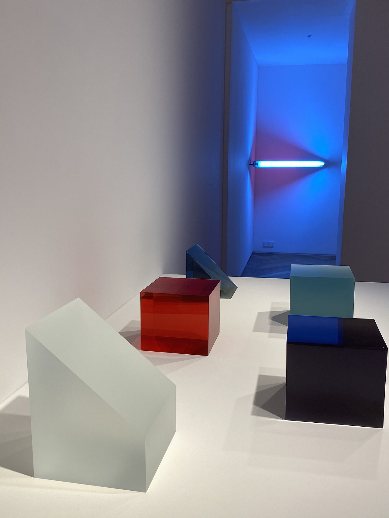 이 알렉산더의 모형을 중심으로 왼쪽과 오른쪽으로 형광등을 주제로 한 작품이 전시가 되어 있었는데, 왼편의 로버트 어윈은 빛을 발하지 않는 형광등이라는 물질 그 자체의 모양과 광택, 색감으로 시작적 리듬을 강조한 불꺼진 형광등이 소재라면 오른편의 플래빈은 형광등에서 발하는 빛의 굴절로 생성되는 색감과 형태의 고요를 강조한, 불 켜진 형광등이 소재 라는 점이 인상적이었다. 이 두 사람은 1980년대 설치작업에 형광을 서로 대비되는 방식으로 사용한 적도 있다고 한다.