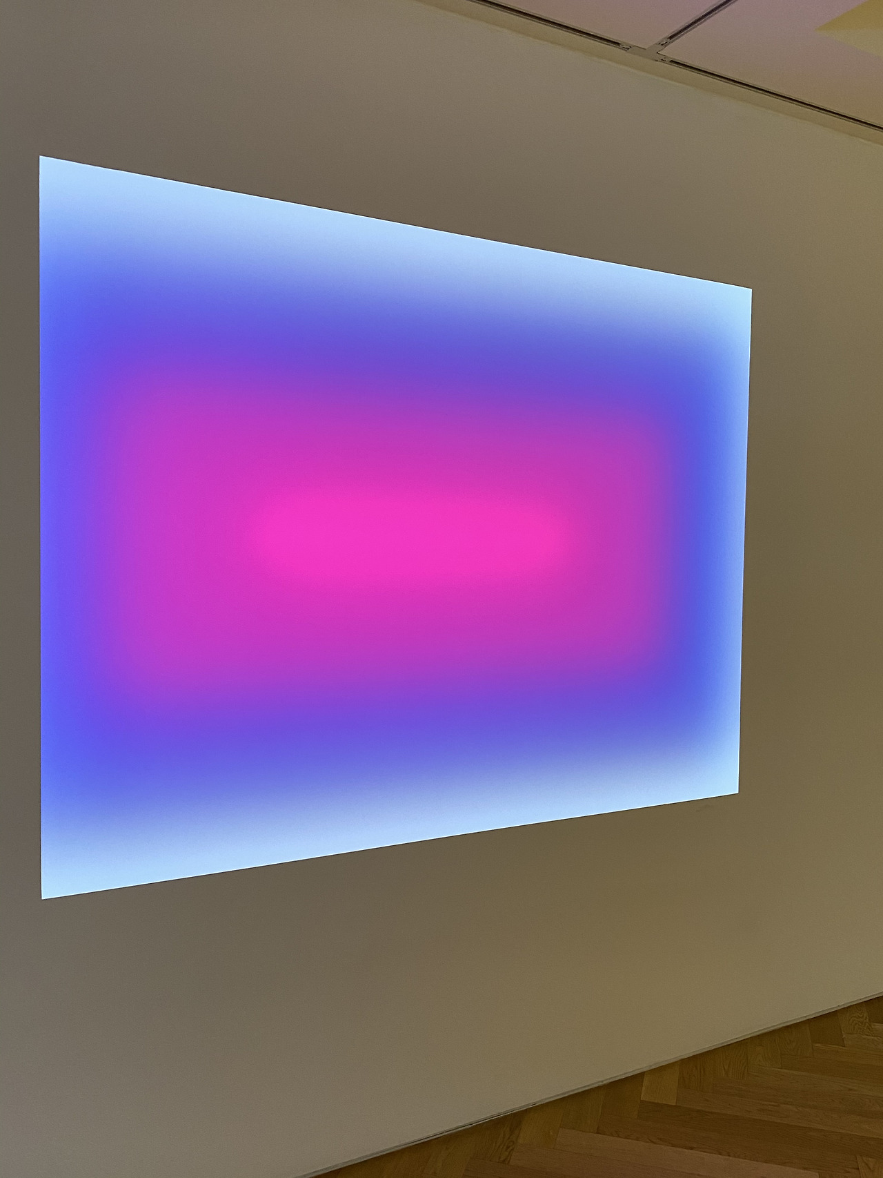나중에 알게 된 사실이지만 페이스에 전시 된 제임스 터렐의 "아틀란티스"는 2019년 신작으로 70만 달러 (한화 약 7억 6천만원)을 호가한다고 했다. 갤러리 벽면에 설치된 가로 185.4 cm 세로 142.2 cm크기의 작품에서 2시간 30분간 변화하는 LED로 만든 여러층의 빛은 지속적으로 다른 모습을 보여주는 하늘의 다양한 색채를 표현하기 위한 것이다. 제주의 본태에서 처음 만났던 그의 초기 작품 중 하나인 <범고래 블루>가 준 터렐 특유의 고요함이 마찬가지로 느껴졌다. 학부에서 인지 심리학과 수학, 지질학, 천문학 등을 공부했던 그는 초기에 프로젝터로 빈 공간에 빛을 반사시키는 단순한 방식으로 사람의 지각과 공간에 퍼지는 빛의 굴절에 따라 보여지는 색의 다양함 앞에서 관람자를 숙연케 하는 명상적 미술을 보여 주었다. 마크 로스코 Mark Rothko가 물감으로 색의 불분명한 경계를 캔버스에 회화적으로 표현했다면, 터렐은 이를 빛과 공간으로 표현한 것.