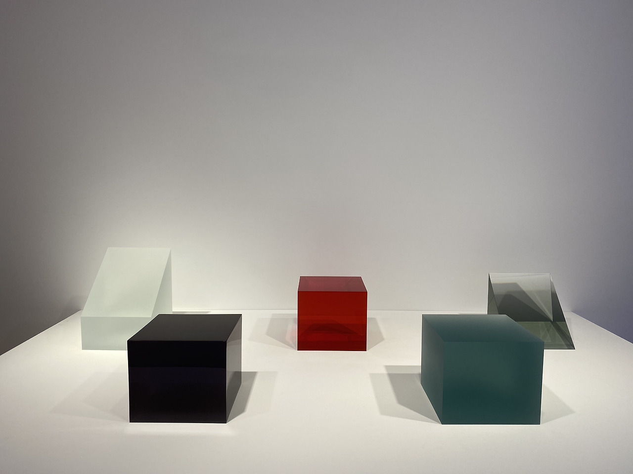 물론 터넬이나 이후 플래빈도 좋았지만, 이 전시에서 오랫동안 나의 시선을 이끌었던 것은 바로 피터 알렉산더의 5개의 우레탄 입체 모형이었다. 각각의 크기는 가로변과 세로변이 평균 20cm 정도, 그 자리에 멈춘 오브제들은 빛을 적당이 흡수했고 바르게 반사시켰다. 전시가 있기 얼마 전인 올해 5월에 별세한 그의 최근 작으로 그는 초기에 서프 보드에 광택을 내는 재료인 레진을 틀에 붓는 기법으로 작업을 하였다.