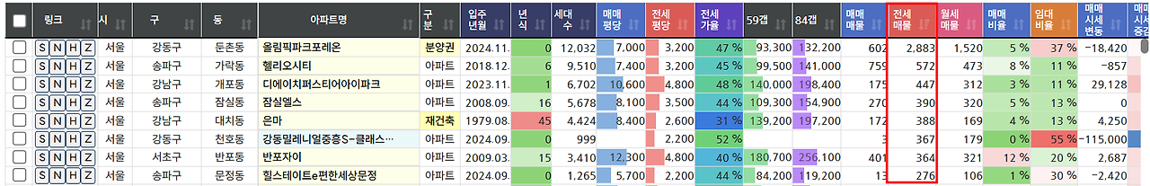 출처 : 손품왕 (서울 일부 지역 전세가율)