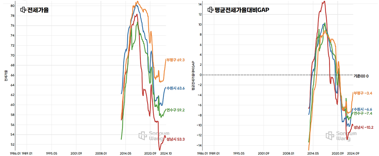 출처 : 손품왕 (수도권 일부 지역 전세가율)