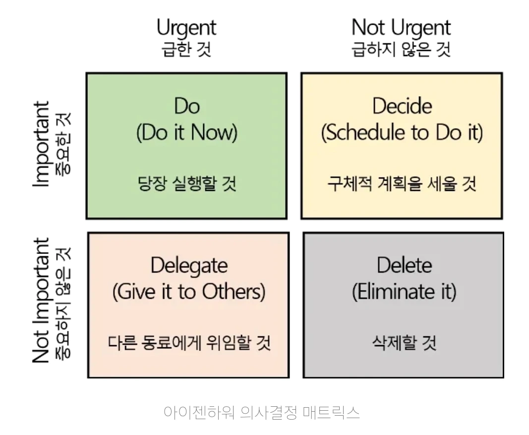 할 일은 '중요하지만 급하지 않은 일'을 하면 가장 효과적입니다. 출퇴근 시간은 이동하면서 집중을 해야 하기 때문에 집중력이 상대적으로 떨어집니다. 그래서 '중요하지만 급하지 않을 일' 같은 집중력이 조금 덜 필요한 일을 하면 효과적입니다. 실제로 여러 가지를 시도해 보았지만 이게 제일 좋았습니다.