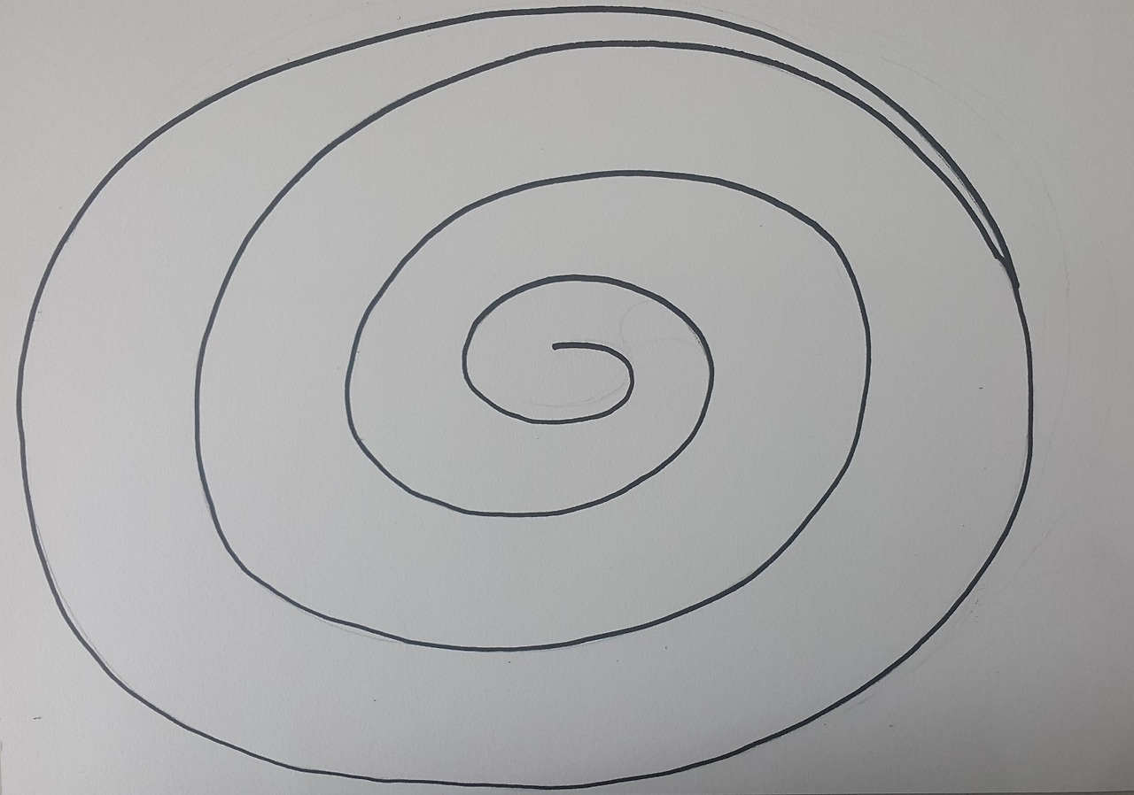 먼저 두꺼운 도화지 뒷면에 동글동글 돌아가는 달팽이 집 모양을 그려준다.