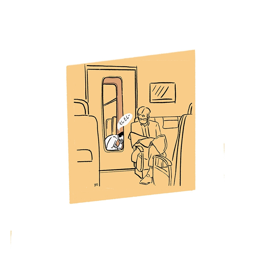 문 너머로 나지막하게 들리는 전화 통화에 자연스럽게 귀가 기울어졌지만 일본어 초짜인 내가 알아들을 리가 없었다. 정장 입은 회사원이었고, 통화를 하면서 굽신굽신 허리를 굽히는 걸 보니, 직장 상사나 고객과의 통화가 아녔을까 짐작한다. 그러고 보니, 전철 안에서 편히 통화하는 사람들을 본 적이 없다. 다들 입을 가리고 구석에서 간단히 답을 한 후 바로 끊거나 전철 칸 사이로 들어가 전화를 마친다. 얼마 전에 아빠 전화가 와서 전철 안에서 받은 적이 있었는데, 조용한 공간 안에 울려 퍼지는 내 목소리가 창피해서 바로 끊은 적이 있다. 아마도 다들 같은 심정으로 전화 통화를 하지 않는 거겠지? 그러고보니... 거리에서도 전화 통화를 하며 걸어다니는 사람을 본적이 없다. 다들 공공장소에서는 통화를 하지 않는걸까?