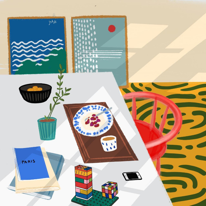 창문으로 들어오는 햇살과 그림자가 집안 가득 펼쳐지는 순간, 지난 여행지에서 구입한 아트포스터와 현지 잡지들, 집 앞에서 주어와 다홍색으로 변신시킨 의자, 그리고 얼마 전 동네 소품샵에서 데려온 화분이 더 아름답게 보입니다. 하루 중에서 이 순간을 제일 좋아하는 이유이기도 합니다. 봄 햇살 받은 저도 아름다워 보일까요?
