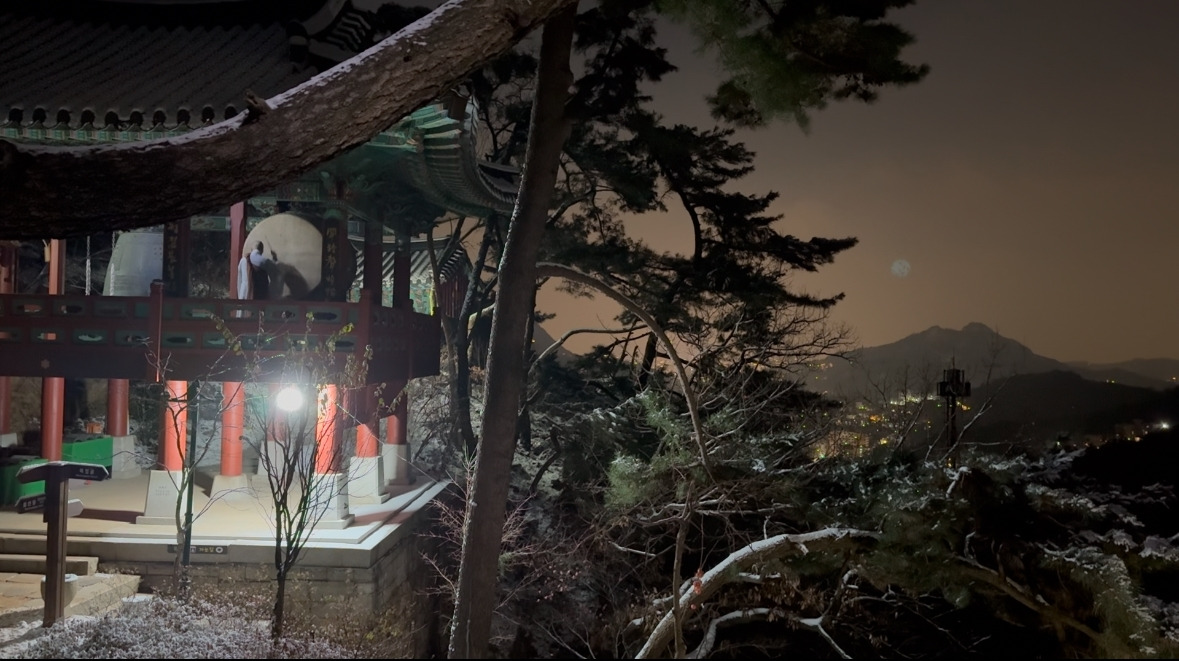 주말에 오랜 친구와 템플스테이를 다녀왔다. 가장 인상깊었던 것은 서울의 야경을 배경으로 법고를 치는 스님이었다. 둥둥 울림을 느끼며 혼신을 다해 법고를 치는 스님의 등과 그 뒤로 반짝이는 야경을 보는데 그 감각들의 합이 이질적이면서도 묘하게 아름다웠다. 끊어질 듯 끊어지지 않는 북의 소리도, 채로 가장자리를 칠 때 나는 신기한 소리도, 그것들이 합해져 계속해서 바뀌는 크기와 리듬도 좋았지만 제일 웃겼던 건 스님이 한바탕 치시고 에휴하고 한숨을 쉬실 때였다. 드디어 오늘도 하루 일과가 끝났구나 하는 한숨이었으려나.
