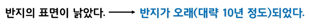 그럼 한번 반지에 대한 추리과정을 살펴보자. 반지의 표면은 얼핏 봐도 낡고 더럽다. 그 반지의 낡은 정도를 통해 대략 10년 정도 지난 결혼반지라는 걸 유추할 수 있다.