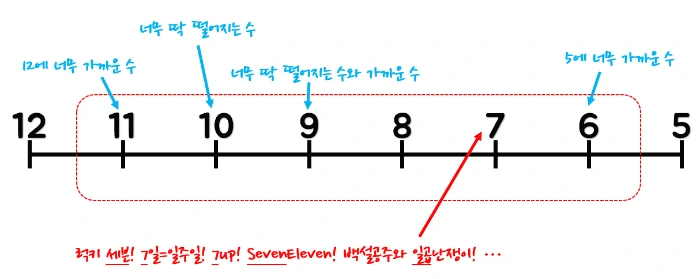 빠르게 12에서 5 사이에 있는 숫자를 고르시오.