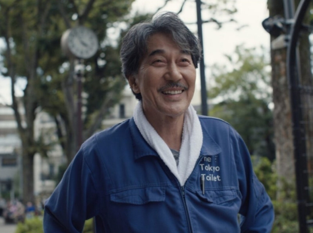 일터에 도착해서 자기가 만든 기구로 청소하는데 불평함이 없다. 오히려 더 정성스럽게 그 일을 해낸다. 그저 묵묵히 자기가 해야 할 일들을 할 뿐이다. 그러다 마주하는 사람들에게 잔잔한 미소를 지어본다. 마치 서로의 존재를 확인이라도 하는 듯. 진심으로 타인에게 건네는 따뜻한 인사였다. 화장실에 놓인 누군가의 장난스러운 쪽지도 지나치지 않고 다정함으로 마주한다. 누군지 모를 사람과 함께 한 빙고 게임은 타인과의 연결도 소중하게 생각하는 히라야마의 모습이다. 서로의 흔적을 매일 확인하며 소소한 게임을 이어가며 종종 미소 짓는 히라야마는 사소한 것도 소중하게 생각하는 사람인 것 같다. 영화에서 영상으로 인상 깊었던 것은 어딘가에 비치는 빛이었다. 건물 천장에 비치는 빛, 하얀 벽에서 춤추는 빛, 나무 사이사이로 쏟아지는 빛, 그림자와 빛의 조화들, 무채색의 대비가 아름다웠다. 히라야마는 그 순간을 볼 때마다 미소를 자아낸다.
