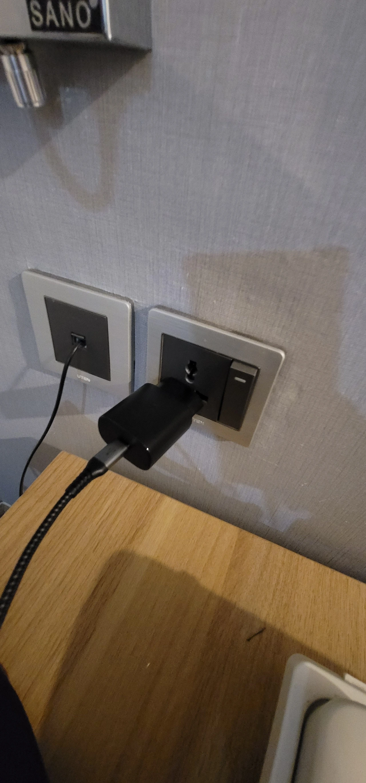 테이블 위 무드등을 보고 특이한 콘센트라도 충전기를 넣어보기로 했습니다.