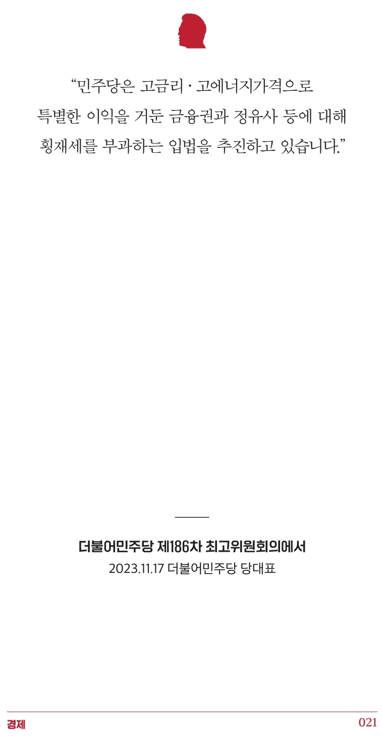 금융권과 정유사의 경영에 대한 이익이 아닌 운에 의한 이익에 대해 공익이 사용하는 것은 이처럼 인간과 돈 중에서 인간을 선택하는 철학에서는 올바른 방향이라고 생각합니다. 만약 기업의 회장이 이런 생각을 한다면 그 기업의 주식은 당장 팔거나 그 철학에 동조하는 사람들만 그 기업의 주주가 될 것입니다. 하지만 국가는 기업이 아닙니다. 이익보다는 국민을 우선해야 하며 이것은 앞서 제시한 미국처럼 손해를 보더라도 미국을 유지하려는 이상적 사상이 앞서야 국가란 무형의 존재(국가는 영토만이 아니기 때문)와 공통된 사상이 유지될 것입니다.