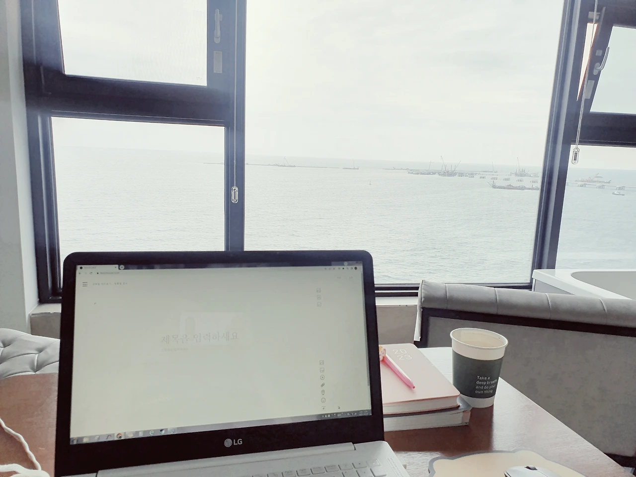바다를 보며 빈 종이에 마음을 기록하며 하루를 시작하는 일