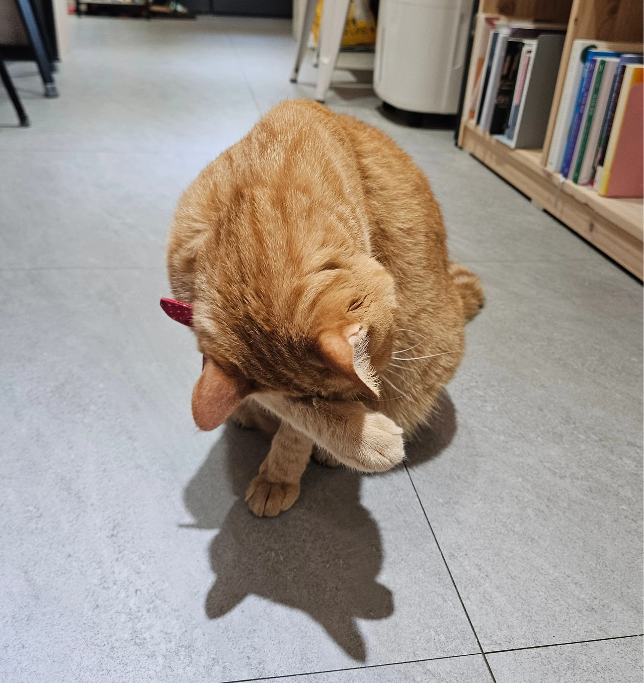 여행 중 우연히 고른 책은 또 다른 의미가 되기도 하니까. 책을 고르고 있는데 어디서 '야옹, 야옹' 소리가 난다. 갈색의 오동통하고 귀여운 고양이가 옆으로 다가왔다. 자신의 존재를 알리는 듯하더니 이내 내 앞에 푹 앉기 시작했다. 오동통 하고 귀여운 고양이라니, 앞에서 얼굴을 열심히 훑더니 자신의 위치로 갔다가 다시 나에게 왔다가를 반복했다