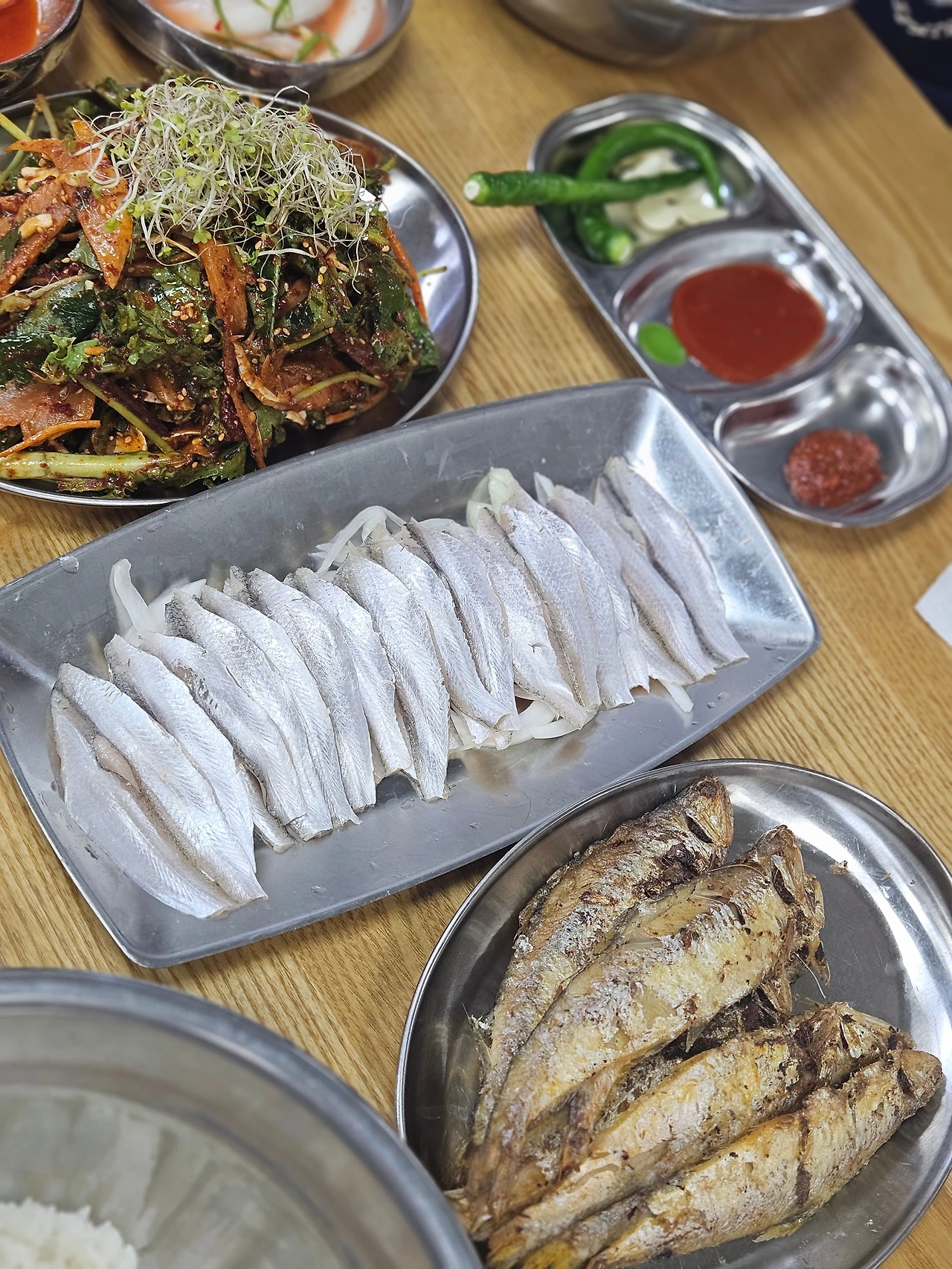 밴댕이라, 속이 좁은 사람을 밴댕이라고만 할 줄 알았지 이렇게 밴댕이 음식을 먹게 되다니, 신기할 따름이다. 여러 명이 간 덕분에 밴댕이 회부터 무침, 구이까지 모두 먹을 수 있었다. 밴댕이는 꽤 담백한 맛. 사실 '엄청 맛있다'라는 느낌보다는 '이런 맛이 밴댕이구나'라는 생각 정도였다