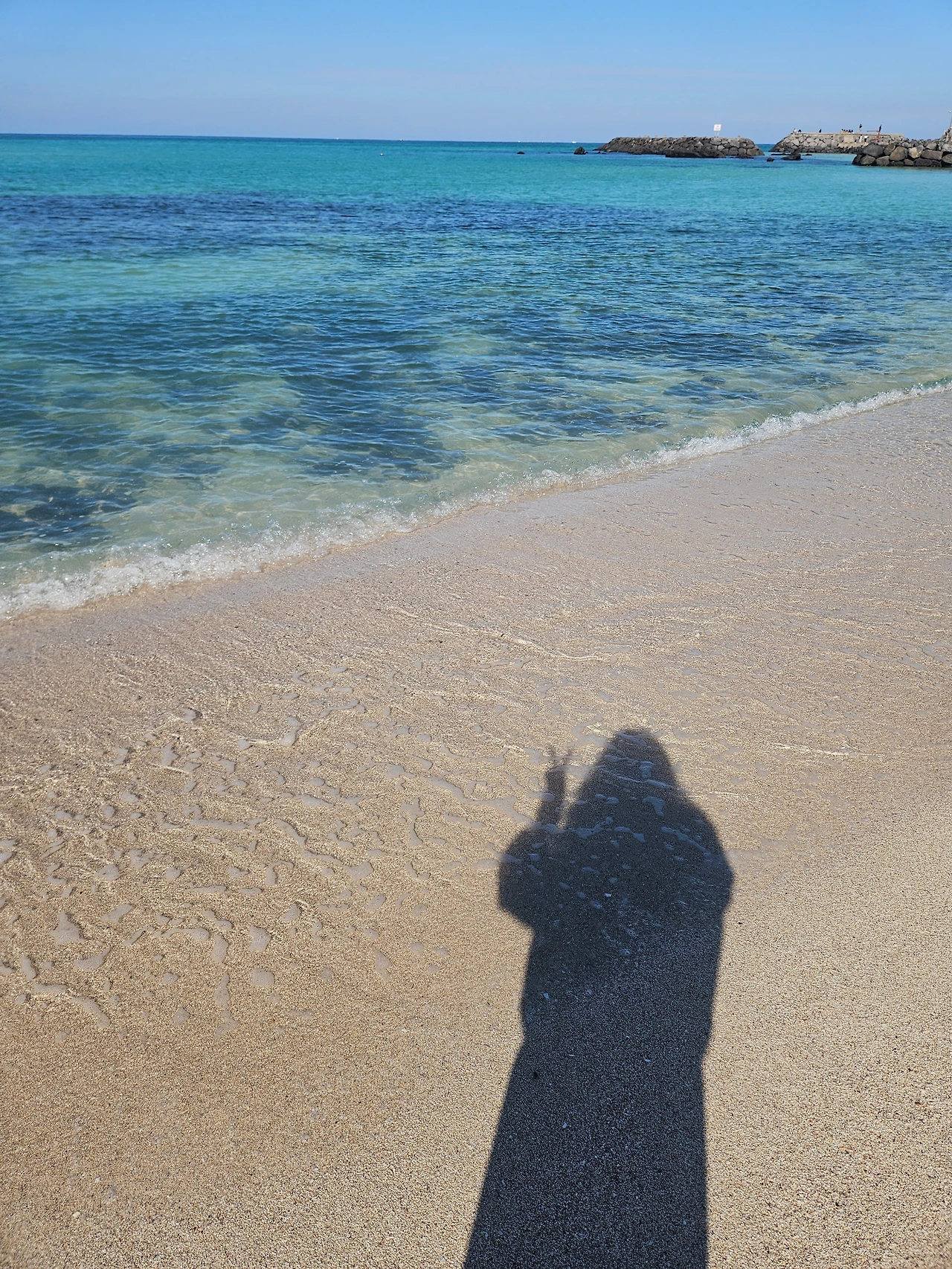 걷기 위해 바다에 왔는데 너무 예쁜 바다와 따듯한 날씨에 일단 모래 바닥에 철퍼덕 앉아 하염없이 바다를 바라보았다
