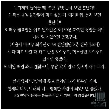3. 영업시간 내에 와 줄 것