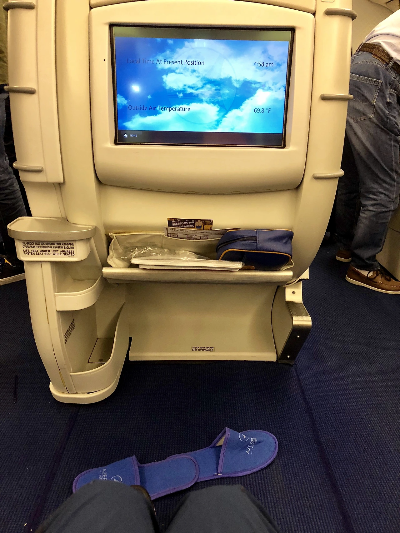 영화를 보기 위해서 눈치껏 리모컨을 조작했다. 한국 영화는 보이지 않아서 <The shape of water>를 선택했다. 주인공이 말을 못 하는 장애인이어서 대사가 적어 이해하기 쉬울듯해서다. 영화가 끝나갈 때쯤 졸음이 쏟아졌다. 잠을 자기 위해 의자를 조작해야 하는데, 이게 생각보다 쉽지 않았다. 조작 버튼만 10개가 넘었다. 발판이 오르락내리락하기도 하고, 뒤판이 여러 각도로 재껴지는가 하면, 팔걸이도 이리저리 움직였다. 10분 넘게 리모컨과 씨름을 하다 포기를 하고 말았다. 무거운 신발을 벗고, 일회용 슬리퍼로 갈아 신은 뒤, 담요를 덮고 잠을 청했다. 고급 안마기에 누워있는 것 같은 착각 속에 이내 잠이 들었다. 현지시각 04시 53분, 드디어 아제르바이잔 공항에 도착했다.